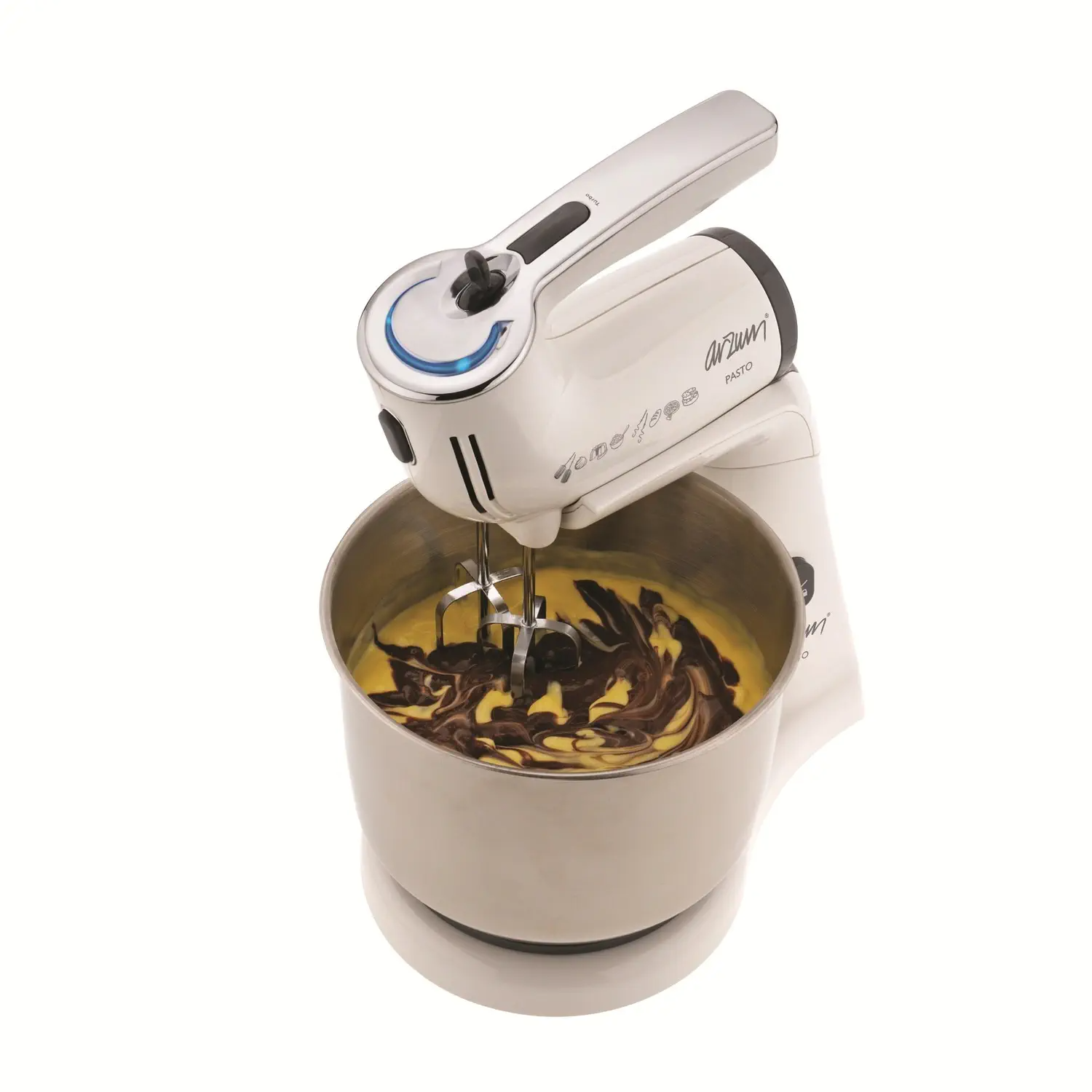 Arzum AR183 Pasto 300 W Standlı Mikser Seti · 300 W · 5 kademeli hız ayarı · Turbo fonksiyonu · 2 çırpıcı/karıştırıcı aparat · 2 hamur yoğurucu aparat · 3.5 lt kapasiteli dönebilen, paslanmaz çelik kase · LED gösterge ışığı · Aksesuar çıkarma düğmesi · Renk: Beyaz |