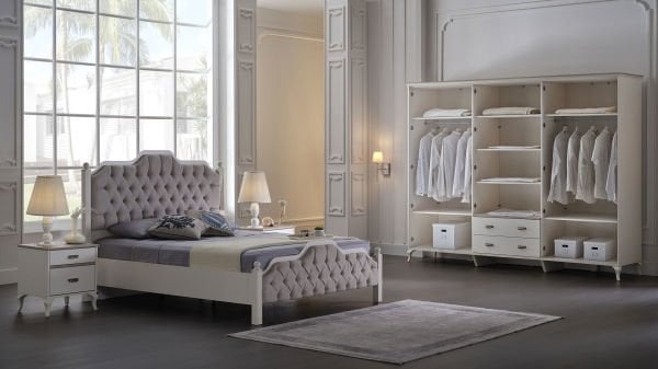 Takımın bir diğer parçası olan dolap, geniş iç hacmi sayesinde bol miktarda depolama alanı sunar. Gardırop, sade ve modern tasarımı ile yatak odanızda şık bir hava oluşturur. Ayrıca, dolapta bulunan özel bölme ve bölmeler sayesinde giysilerinizi düzenli bir şekilde saklamak daha da kolaylaşır.