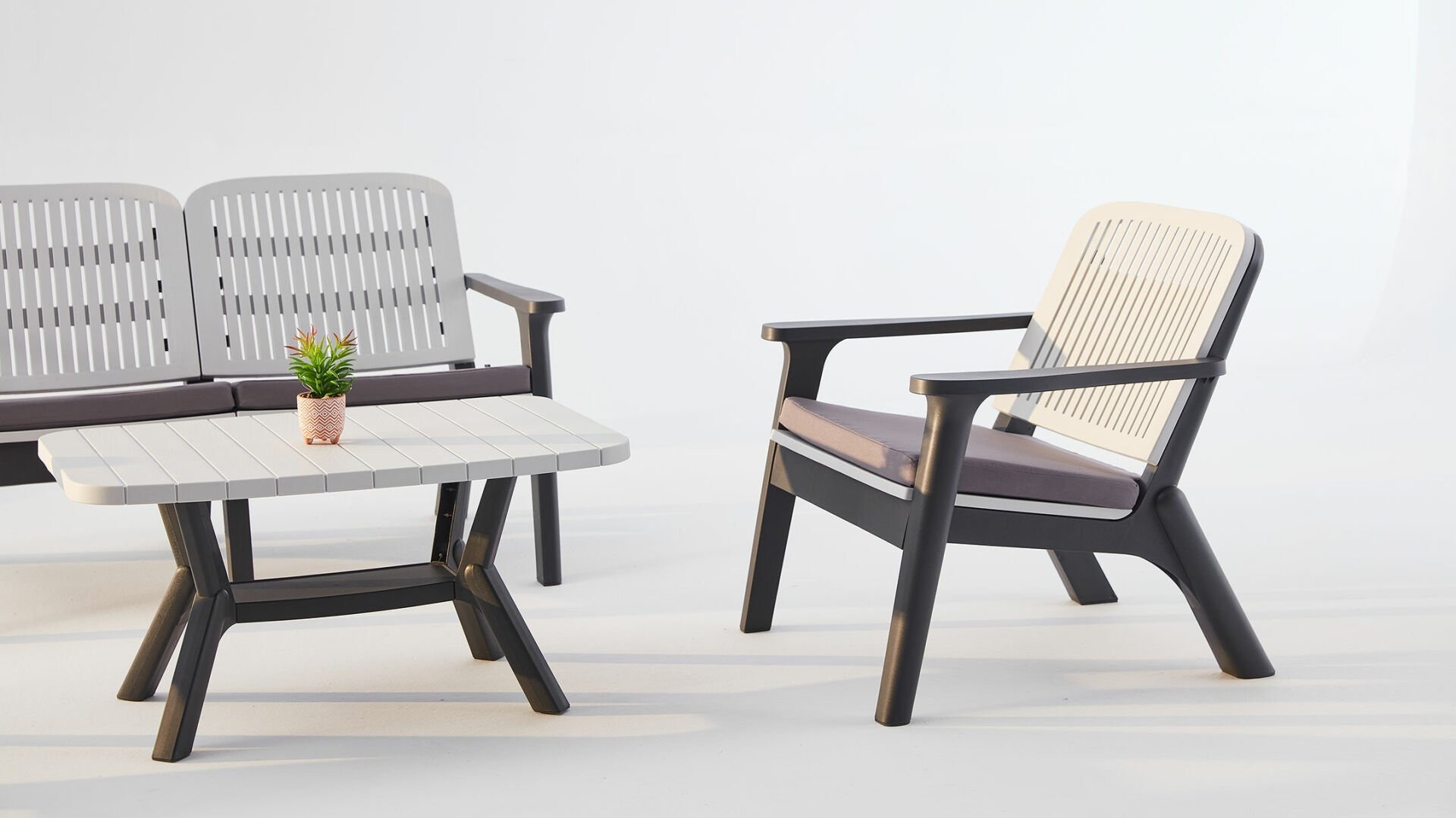 Mobilyaların en dikkat çekici özelliklerinden biri ise modern ve zarif gri renk seçeneğidir. Gri, son yılların trend renklerinden biri olup her türlü dekorasyon ile uyum sağlamaktadır. Böylece bahçenizin tarzını da göz önünde bulundurarak seti tercih edebilirsiniz.