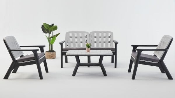 Setin içerisinde iki adet tekli koltuk, bir adet çiftli koltuk ve bir adet sehpa bulunmaktadır. Bu parçaların her biri ergonomik yapısı sayesinde maksimum konfor sağlamaktadır. Geniş ve rahat oturma alanları ile arkadaşlarınız ve ailenizle bahçede keyifli zaman geçirebilirsiniz.