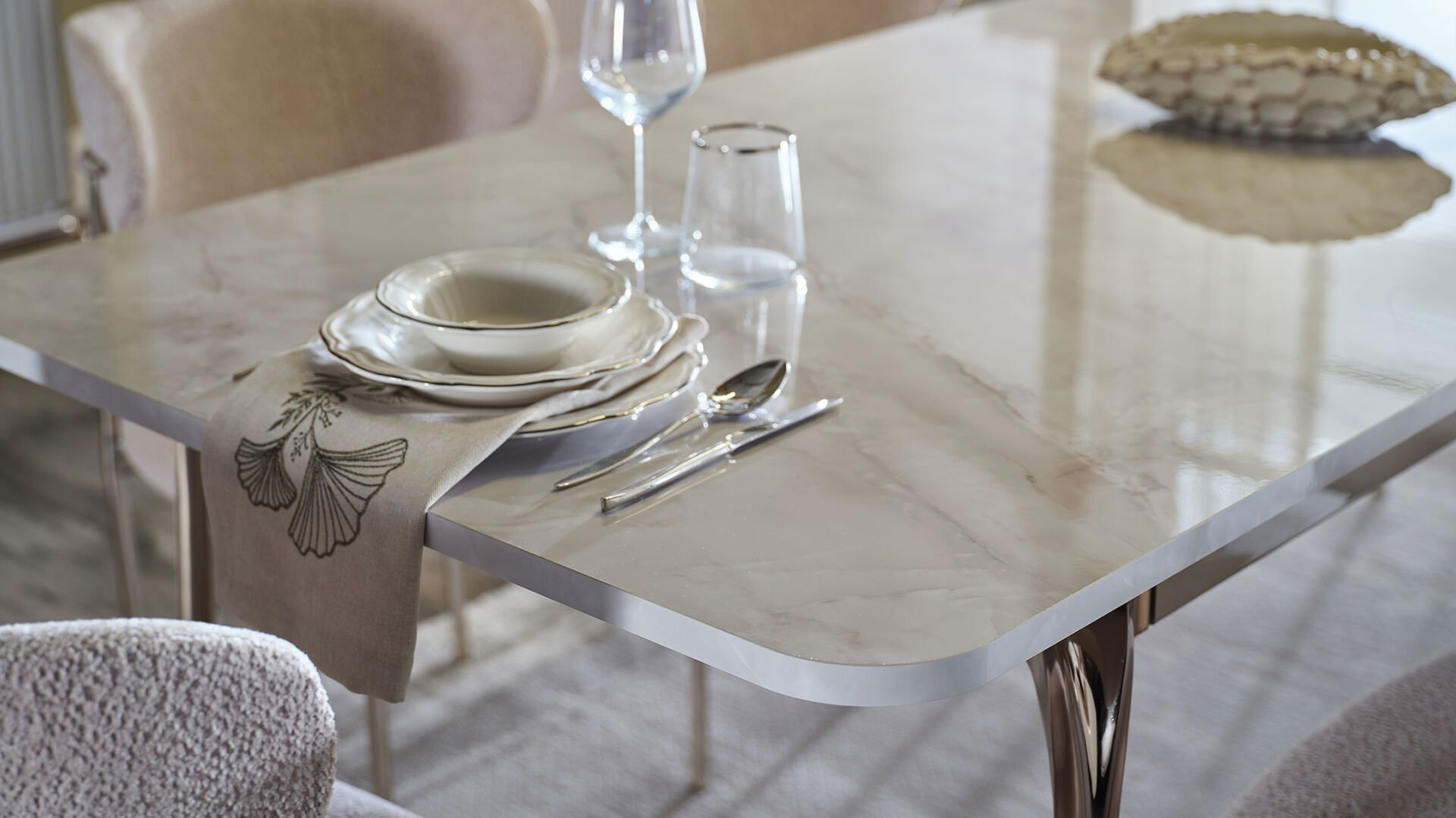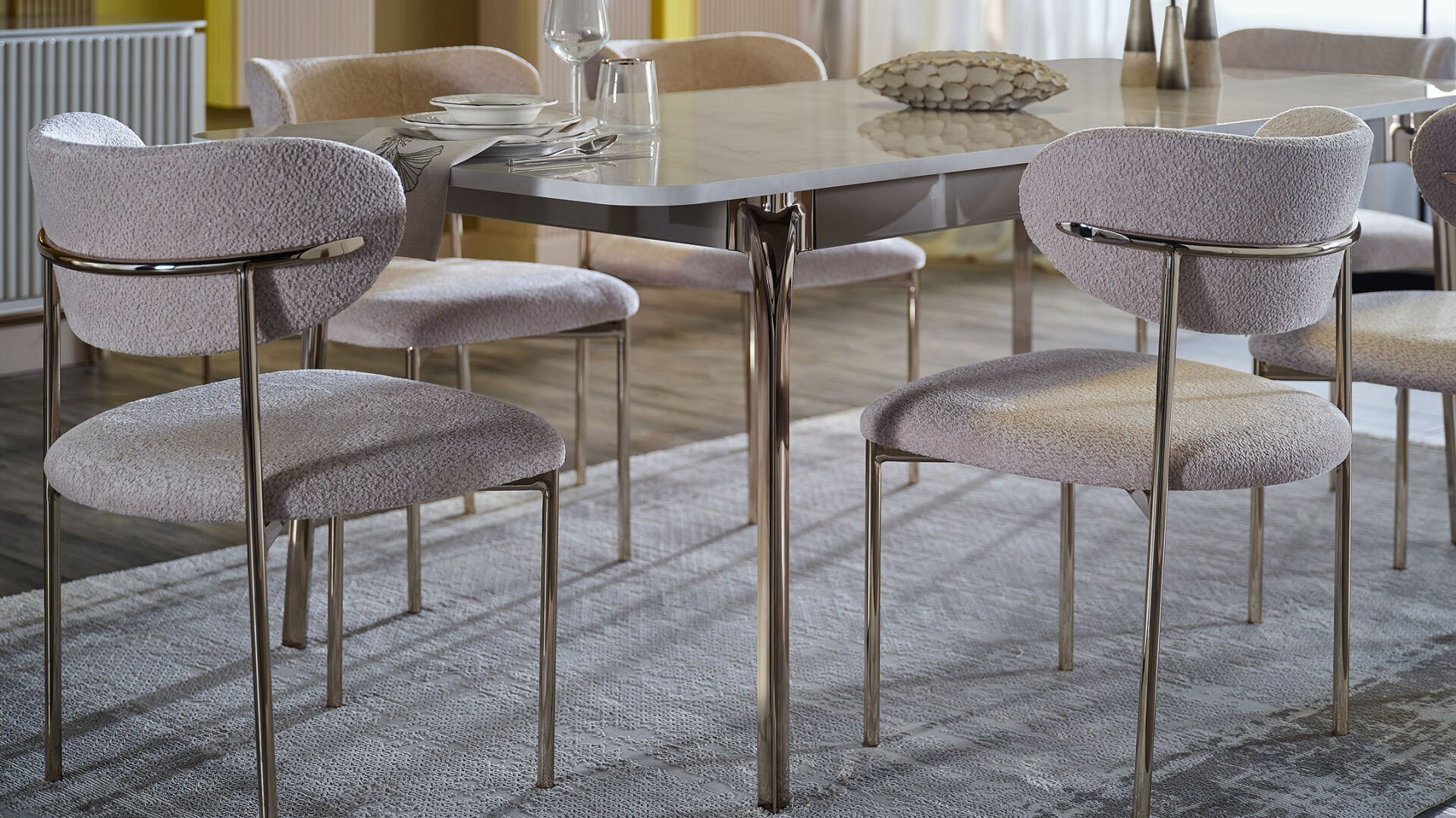 Bellona Estella, çağdaş tasarımıyla dikkat çekerken, aynı zamanda kullanışlılığı da ön planda tutar. Minimalist çizgiler, zarif renk tonları ve şık dokular, bu yemek odası takımının her bir parçasında kendini gösterir. Ahşap detaylarla zenginleştirilmiş yüzeyler, doğallığı ve sıcaklığı bir arada sunar. Takımın genel estetiği, modern ve klasik unsurları harmanlayarak her türlü dekorasyona uyum sağlar.