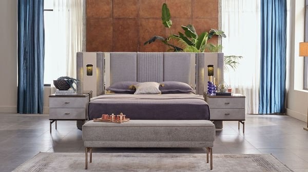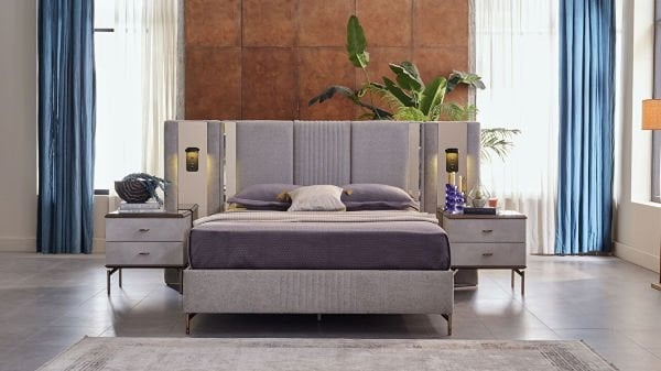 Yatak odası takımının içinde yatak, başlık, iki adet komidin, bir adet şifonyer ve bir adet gardırop bulunmaktadır. Bu sayede tüm yatak odası mobilyalarını tek seferde alarak uyumlu bir tasarım elde edebilirsiniz. Yatak odanızın dekorasyonunu tamamlayacak bu benzersiz takım, her detayıyla dikkat çekmeyi başaracaktır.