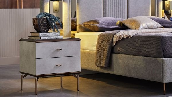 Takımın bir diğer unsuru olan şifonyer, yatak odanızın dekorasyonuna modern bir dokunuş katmaktadır. Büyük bir ayna ve geniş çekmece bölümleri sayesinde kullanışlı ve şık bir üründür. Komidinler ise yatak başlığıyla uyumlu olarak tasarlanmıştır ve yatağınızın yanında ihtiyacınız olan eşyaları koymak için ideal bir seçimdir.