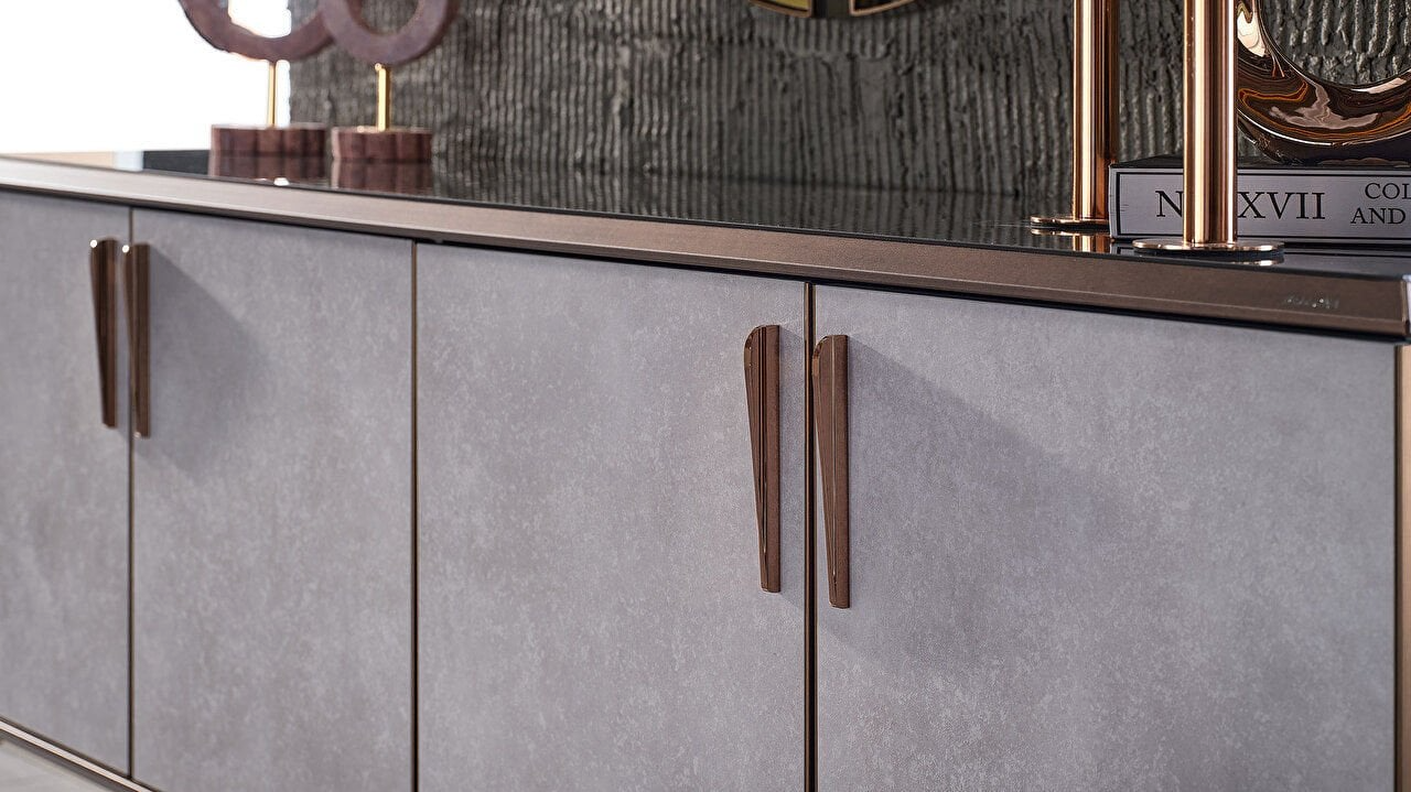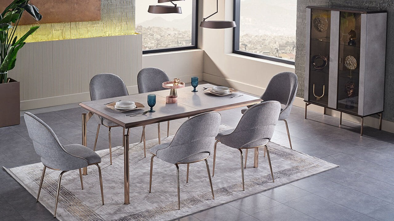 Havana Yemek Odası Takımı, sade ve zarif çizgileriyle dikkat çekiyor. Yemek masasında kullanılan kaliteli malzemeler, takımın uzun ömürlü olmasını sağlarken, şık yüzey dokusu da görsel bir zenginlik sunuyor. Geniş açılı yemek masası, kalabalık misafirleriniz için ideal bir alan oluştururken, düzenli ve şık görünümü sayesinde her alanda rahatlıkla kullanılabiliyor.