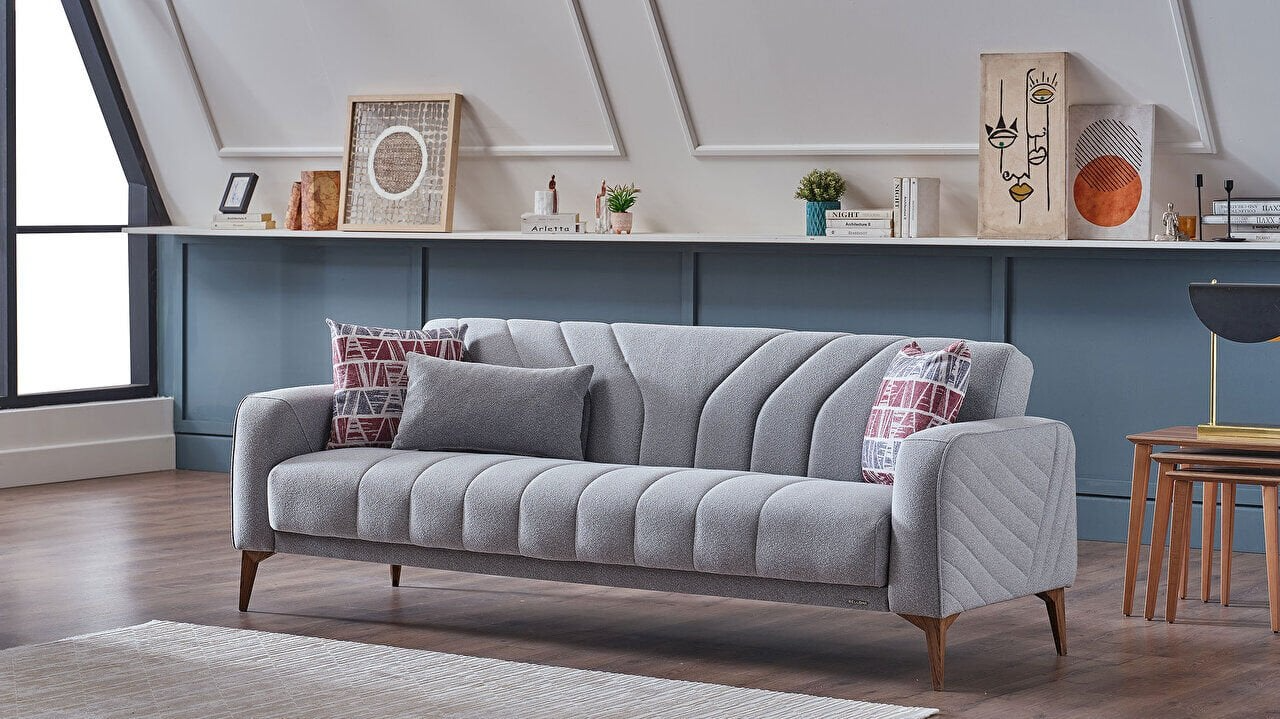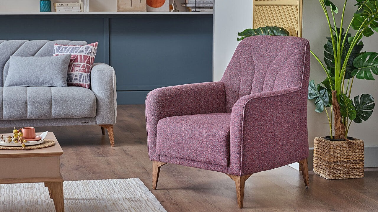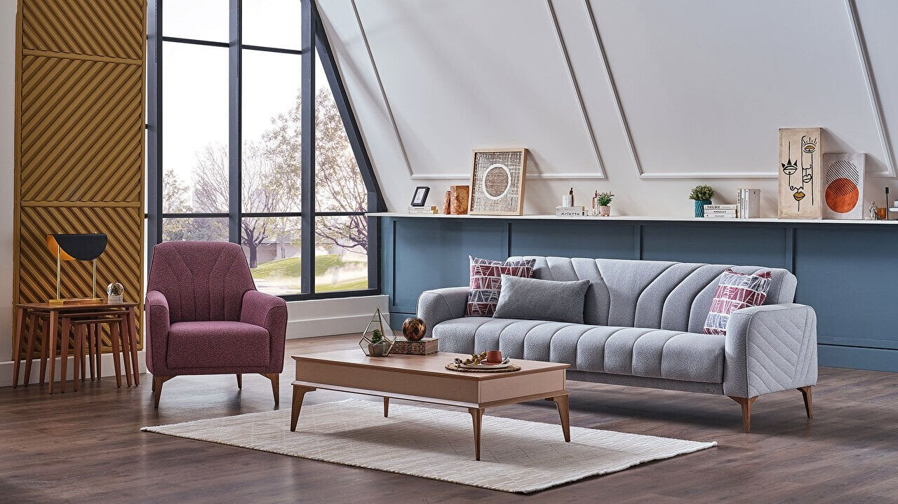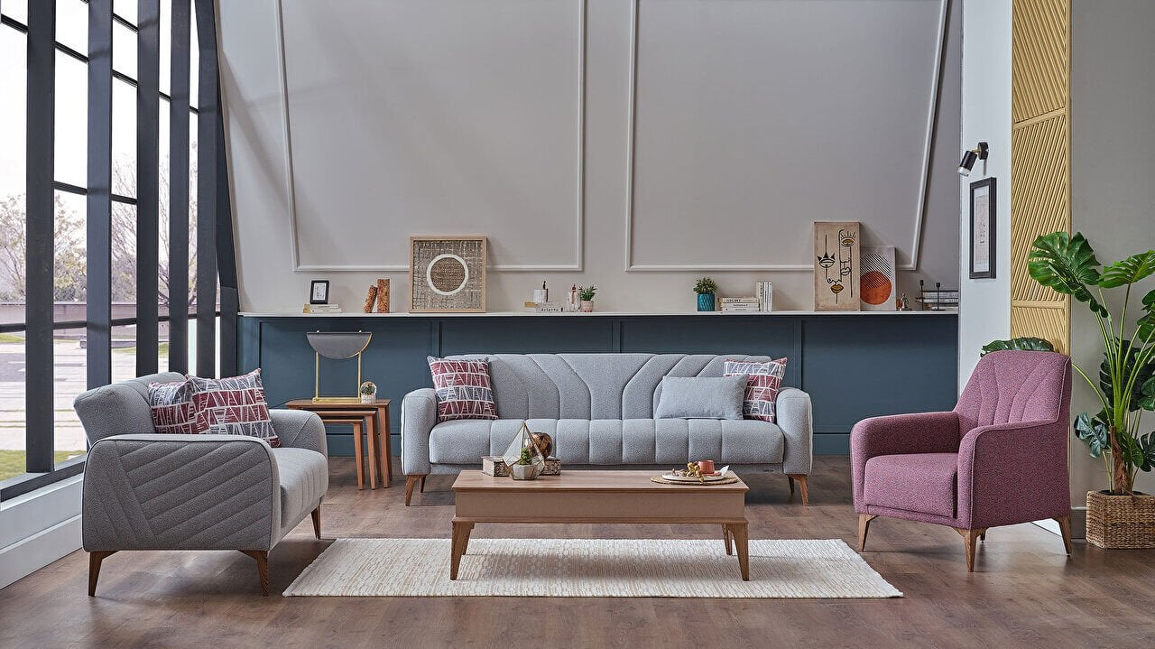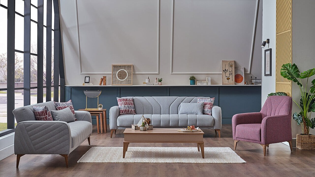 - Mathias Üçlü Koltuk - Bordo Kırlent Gri