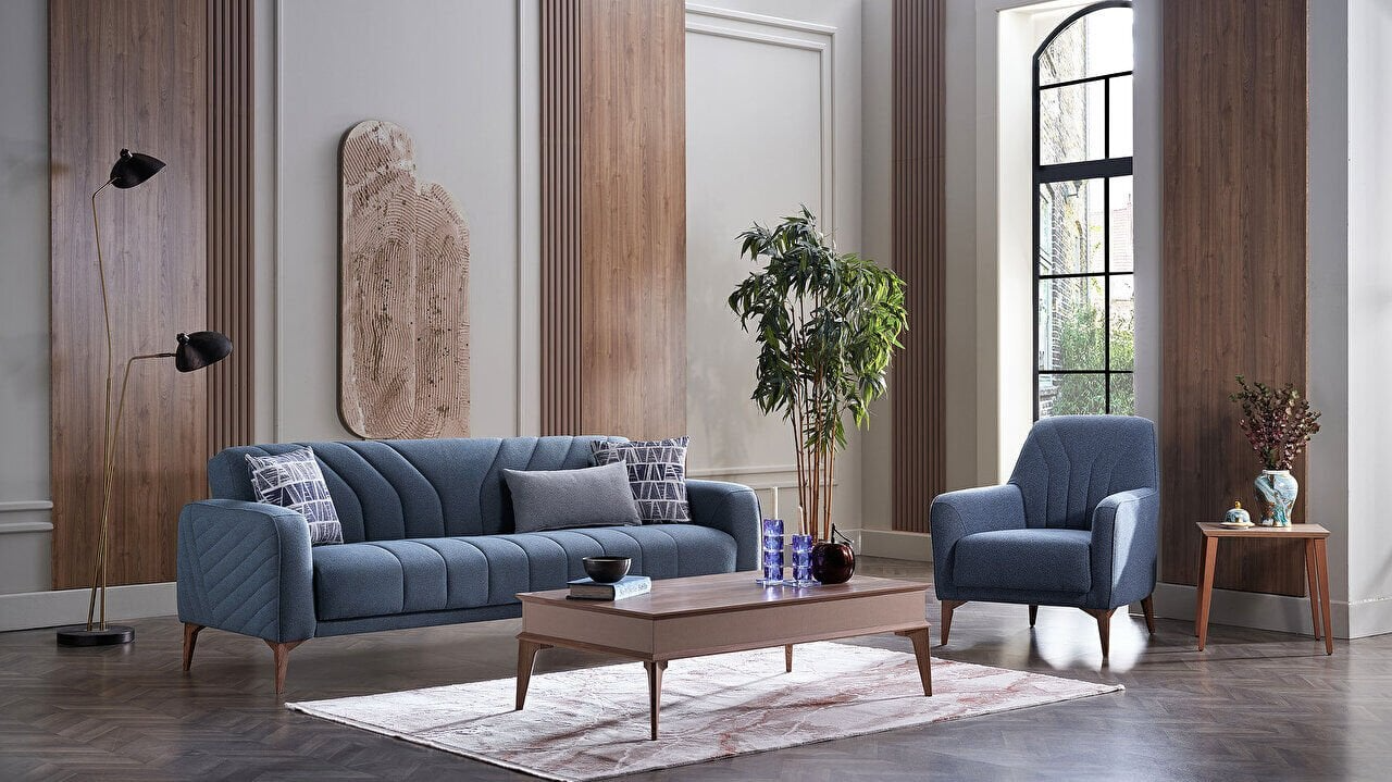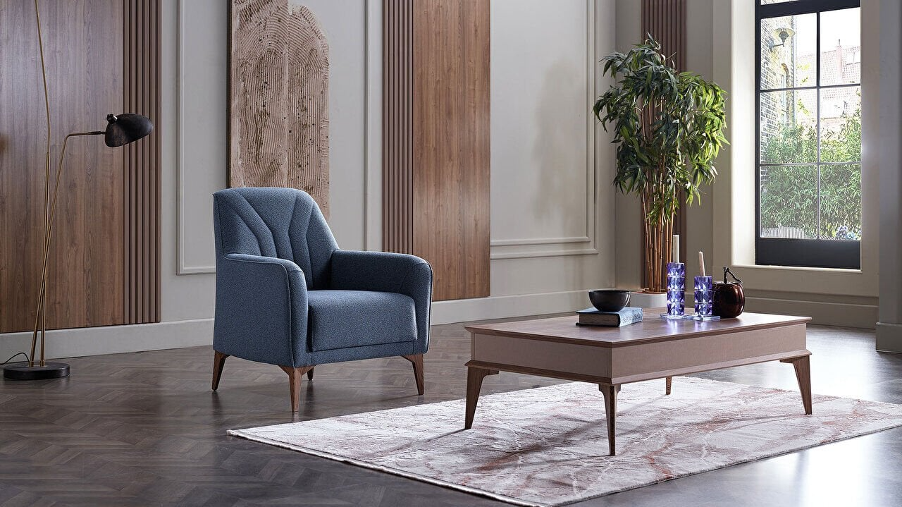 Mavi Mavi Berjer, son derece şık ve modern bir tasarıma sahiptir. Dikdörtgen şeklindeki sade ve zarif tasarımı, herhangi bir dekorasyon tarzına uyum sağlayabilir. Berjerin rahat bir koltuk minderi ve yüksek sırt dayanağı bulunmaktadır. Bu sayede uzun saatler boyunca konforlu bir oturma deneyimi sunar.