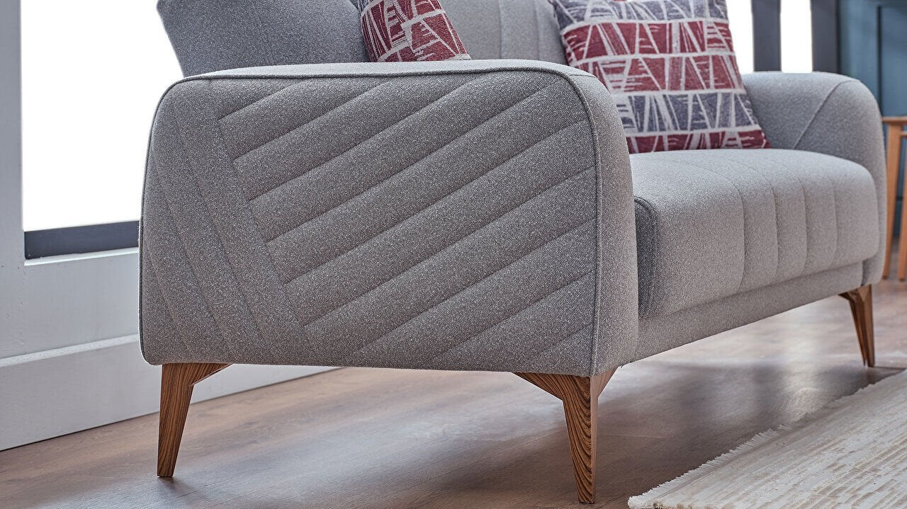 Ürünün gövde kısmı, dayanıklı bir ahşap çerçeveye sahiptir ve üzerinde özel doku işlemi uygulanan bir kumaş ile kaplanmıştır. Koltuğun oturma minderi ve sırt dayanağı, yüksek kaliteli bir sünger ile doldurulmuştur ve uzun süreli kullanıma dayanıklılık sağlamak için özel olarak tasarlanmıştır. Ayrıca, koltuk minderi ve sırt dayanağı üzerindeki desenler, Türk kültürünün zengin motiflerinden ilham alınarak tasarlanmıştır ve ürüne karakteristik bir Türk havası kazandırmıştır.