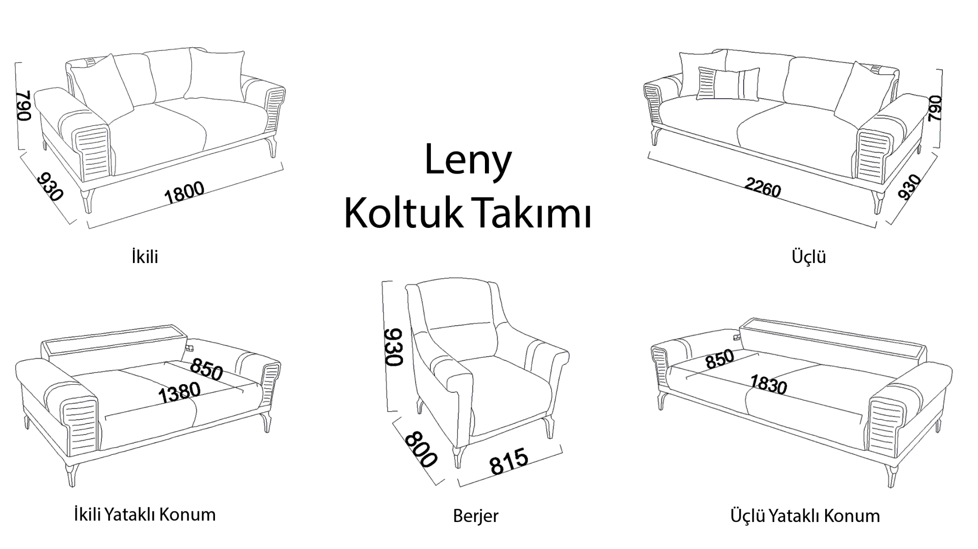 Koltuk takımının kumaş yapısı, günlük yaşamın getirdiği yıpranmalara karşı dayanıklıdır ve özel bakıma ihtiyaç duymaz. Kolay silinebilir yüzeyleri sayesinde temizlik işlemleri de pratiklik içermekte. Ailece geçireceğiniz keyifli anların yanı sıra, misafirlerinizin de rahatça ağırlanmasını sağlayacak bu koltuk takımı, tüm bu özellikleriyle ev dekorasyonunuza değer katmaktadır.