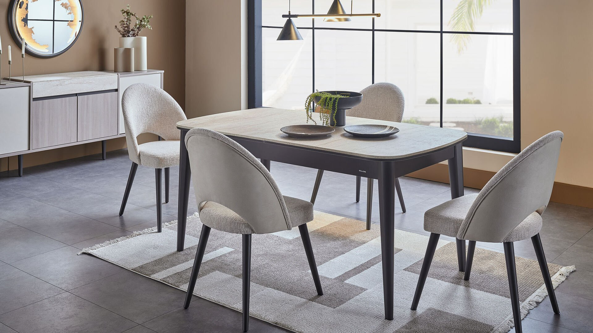 Bellona Melinton Yemek Odası Takımı, ince işçilikle göz alıcı detaylarla donatılmıştır. Masanın zarif ayakları ve sandalyelerin estetik çizgileri, mekanınıza modern bir hava katarken, konfor alanınızı da artırır. Renk seçenekleriyle ev dekorasyonunuza uyum sağlarken, oturum alanlarındaki yumuşak kumaş kaplamalar, konforu maksimum düzeye çıkarır.