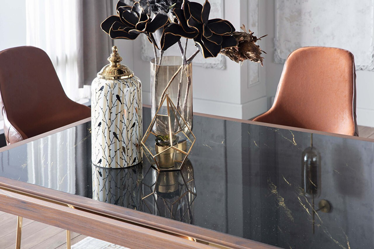 - Tasarım: Modern çizgileri ve estetik detaylarıyla dikkat çeken yemek masası, minimalist bir yaklaşım sergileyerek alana ferah bir hava katar.