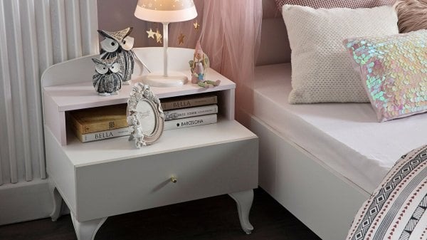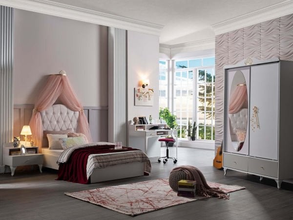 Sandy Genç Odası Takımı'nın diğer önemli parçaları olan gardırop ve komidinler de özenle tasarlanmıştır. Gardırop, geniş iç hacmi ve düzenleyiciliği ile gençlerin ihtiyaç duyduğu tüm eşyalarını kolayca saklamalarına olanak tanır. Komidinler ise kullanışlı ve şık çekmeceleri sayesinde odanın düzenli kalmasına yardımcı olur.