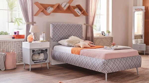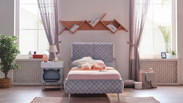 Gençlerin dinlenme ve çalışma alanlarını ayrı tutmalarına imkan sağlayan çift fonksiyonlu yatak, iki katlı ve çekmecelidir. Bu sayede gençlerin ihtiyaçlarına göre yatak ya da depolama alanı olarak kullanabilmeleri mümkün olmaktadır. Yatağın baş tarafında bulunan ve yatak altında gizlenmiş bir çalışma masası, ders çalışmaları için ideal bir ortam sunmaktadır.