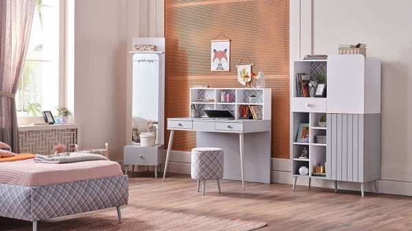 Takımın şık ve modern tasarımı, gençlerin odalarına güzellik katarken, doğru bir kullanım alanı yaratmayı da amaçlamıştır. Uzun süreli kullanımlarda bile dayanıklılığını koruyan ürünler, gençlerin büyüyen ihtiyaçlarına uyum sağlayacak şekilde tasarlanmıştır. Dolap, şifonyer, komodin ve kitaplık gibi parçalarda, çeşitli renk seçenekleri sunulmaktadır. Böylelikle gençlerin zevkleri doğrultusunda odalarını kişiselleştirmeleri mümkün olmaktadır.
