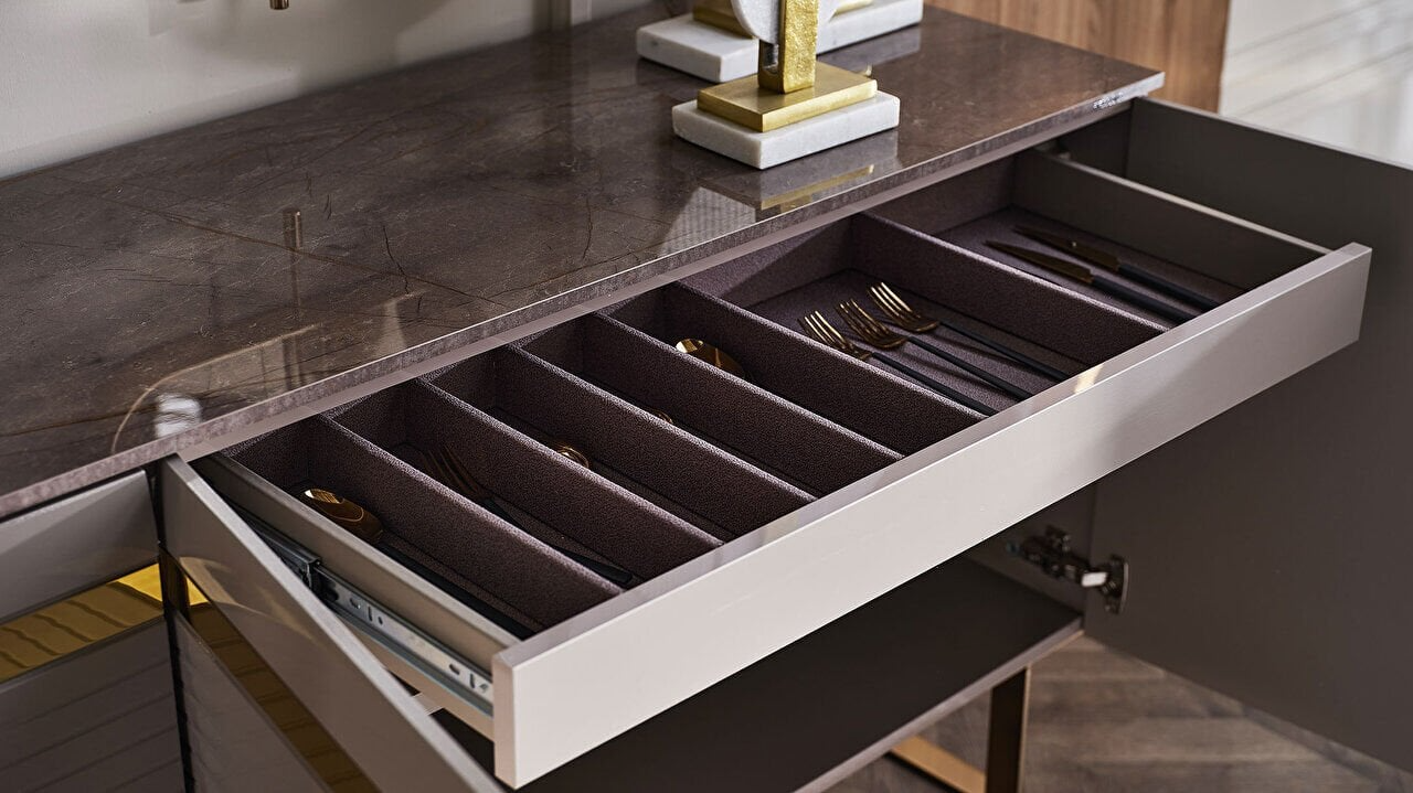 Yemek masası, geniş yüzeyi sayesinde ailenizle ya da misafirlerinizle keyifli yemekler hazırlamanıza olanak tanır. Takımda yer alan sandalyeler, konforlu oturumları ile uzun yemek sohbetlerini daha da keyifli hale getirir. Ayrıca, takımın bazı parçalarında bulunan depolama alanları, kullanım kolaylığı sunarak eşyalarınızı düzenli bir şekilde saklamanıza yardımcı olur.