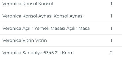 Bellona'nın şıklığı ve fonksiyonelliği bir araya getiren Veronica Yemek Odası Takımı, ailenizin ve misafirlerinizin bir araya geleceği en özel anların tadını çıkarabileceğiniz mükemmel bir ortam oluşturur. Modern tasarımı ve zarif detayları ile dikkat çeken bu yemek odası takımı, kullanım rahatlığı ve estetik kaygılarınızı bir arada düşünerek tasarlanmıştır.