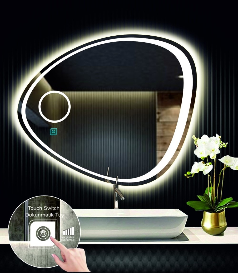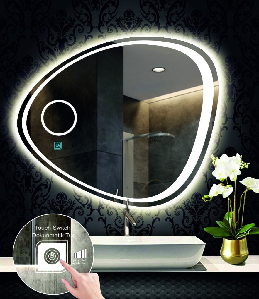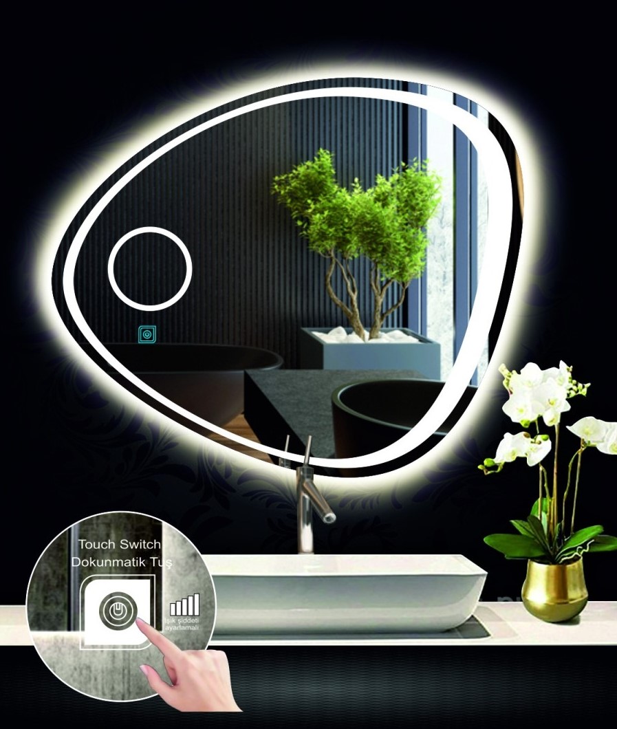 • DNR Mirror Kumlamalı Dokunmatik Tuşlu Asimetrik Ledli Işıklı Dekoratif Banyo ve Makyaj Aynası