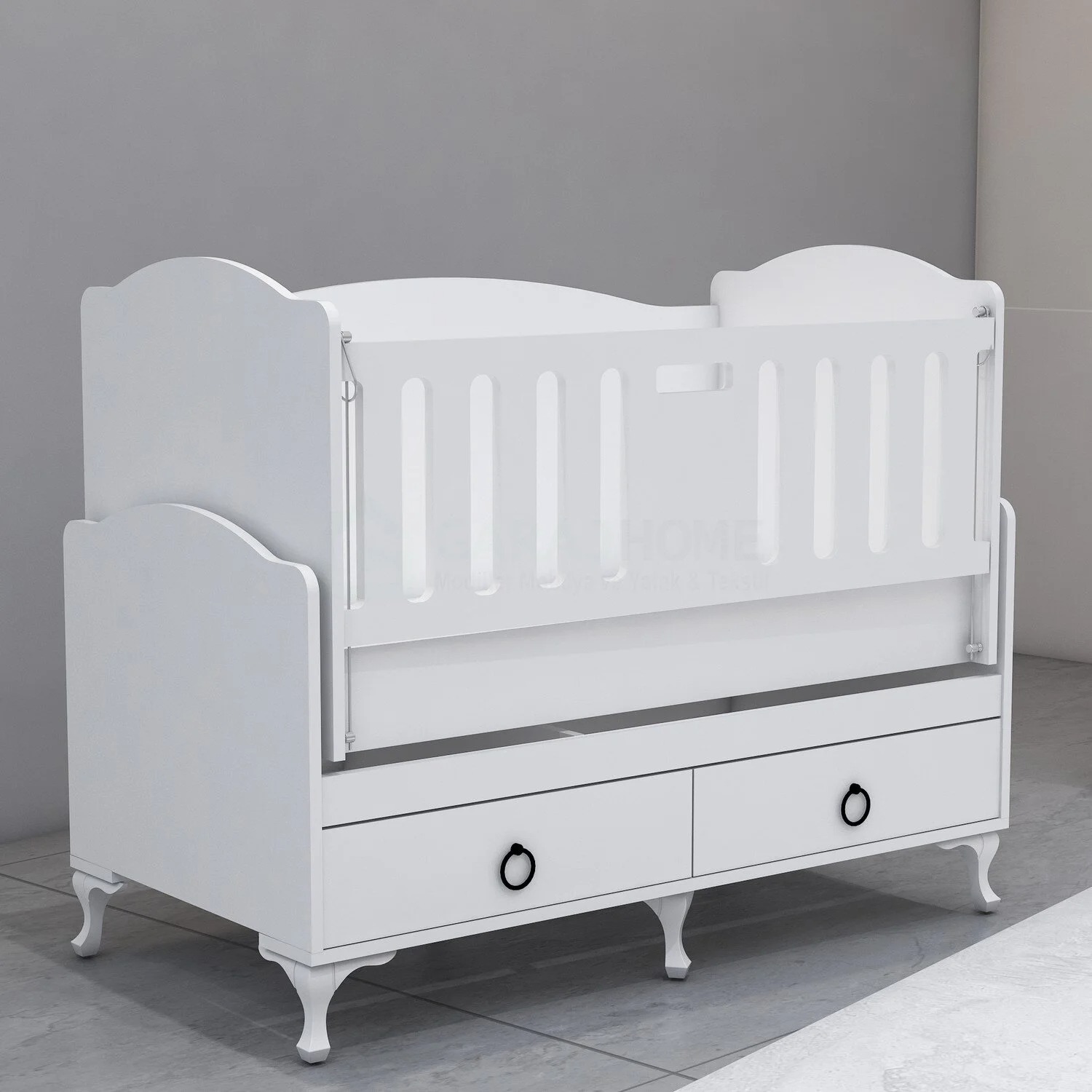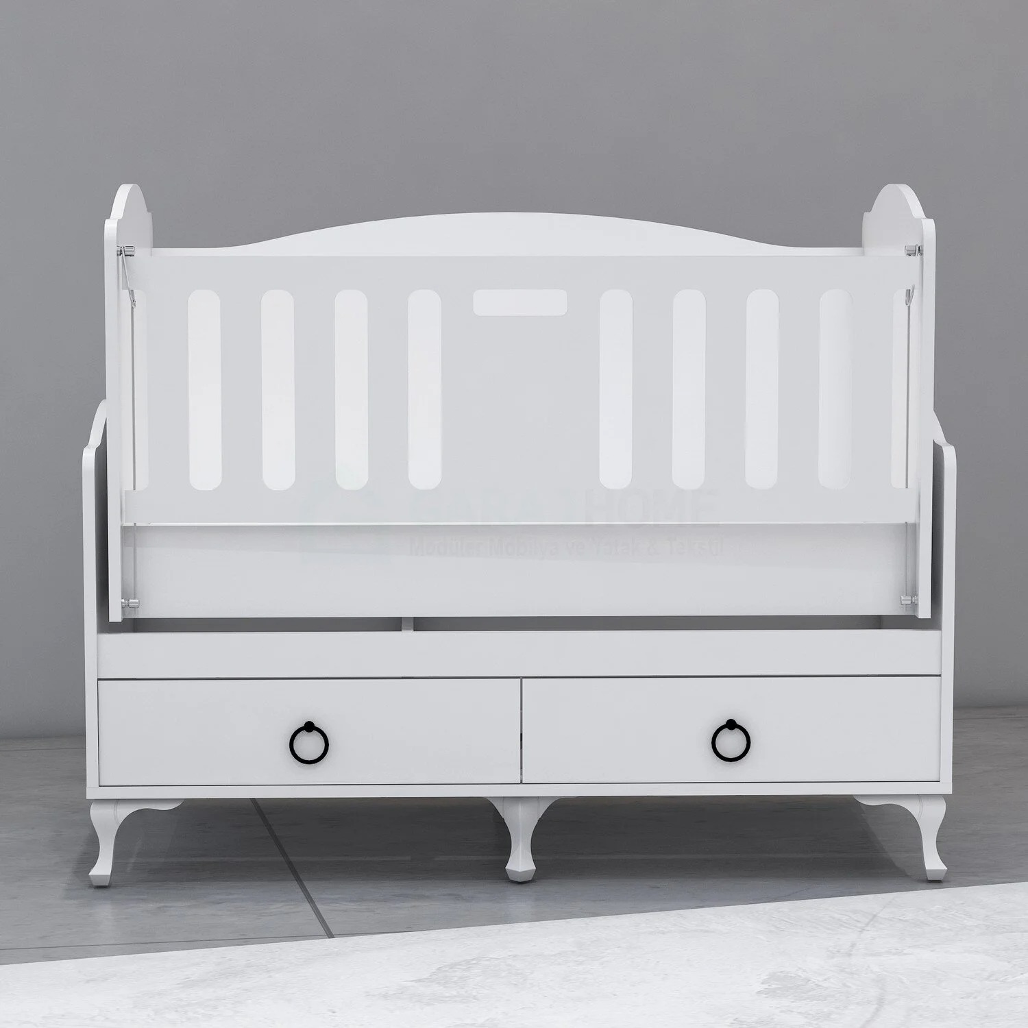 İlk 6 ay tüm annelerin bebeğini beşiklerine daha rahat ve kolay yatırabilmeleri için beşiğimizin ön korkuluğunu asansörlü olarak üretmekteyiz.