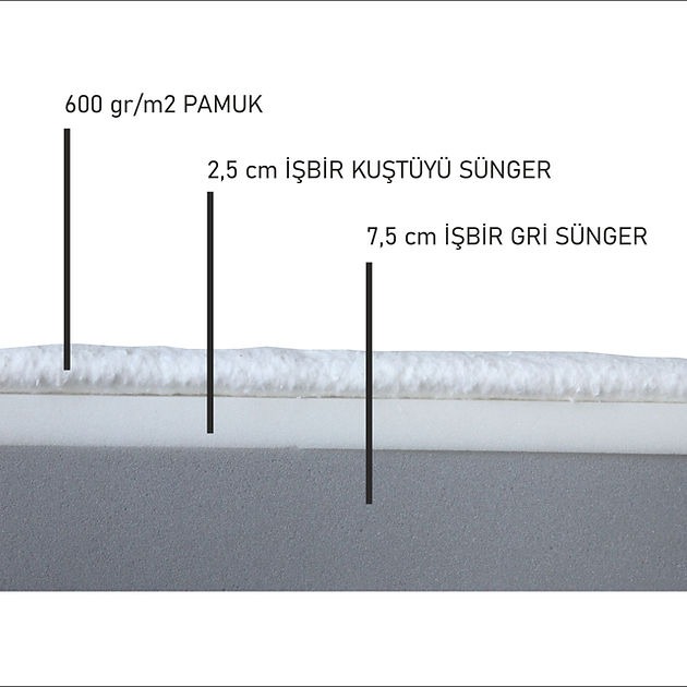 7.5 cm kalınlığında destekleyici sünger, yüksek yoğunluğu sayesindeçok yüksek basınçta bile özelliğini kaybetmeden uzun yıllarkullanılabilmektedir.
