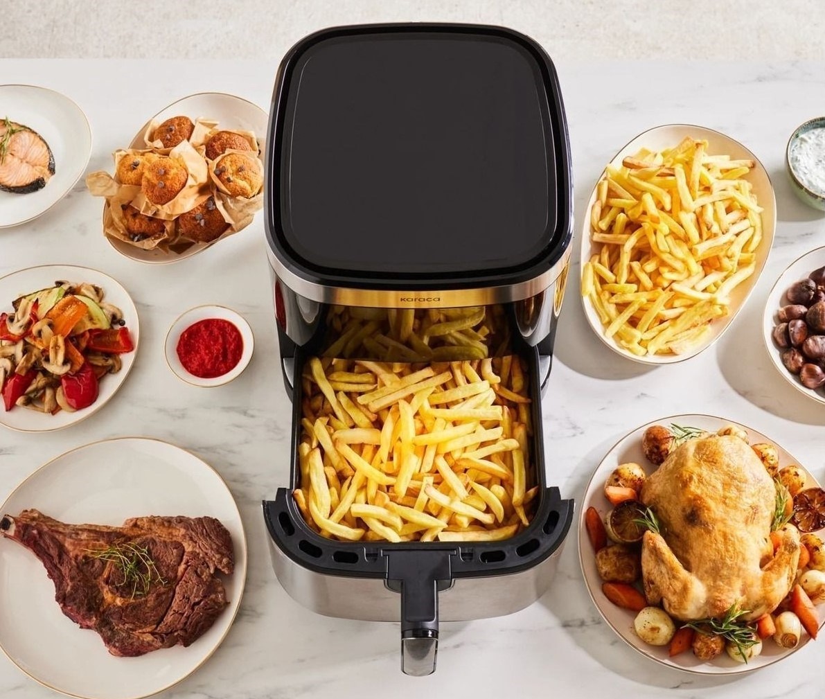 Karaca 9 Litre Xxxl 10 Farklı Pişirme Fonksiyon Akıllı Dokunmatik Ekran Geniş Hazne Inox Gövde Airfryer
