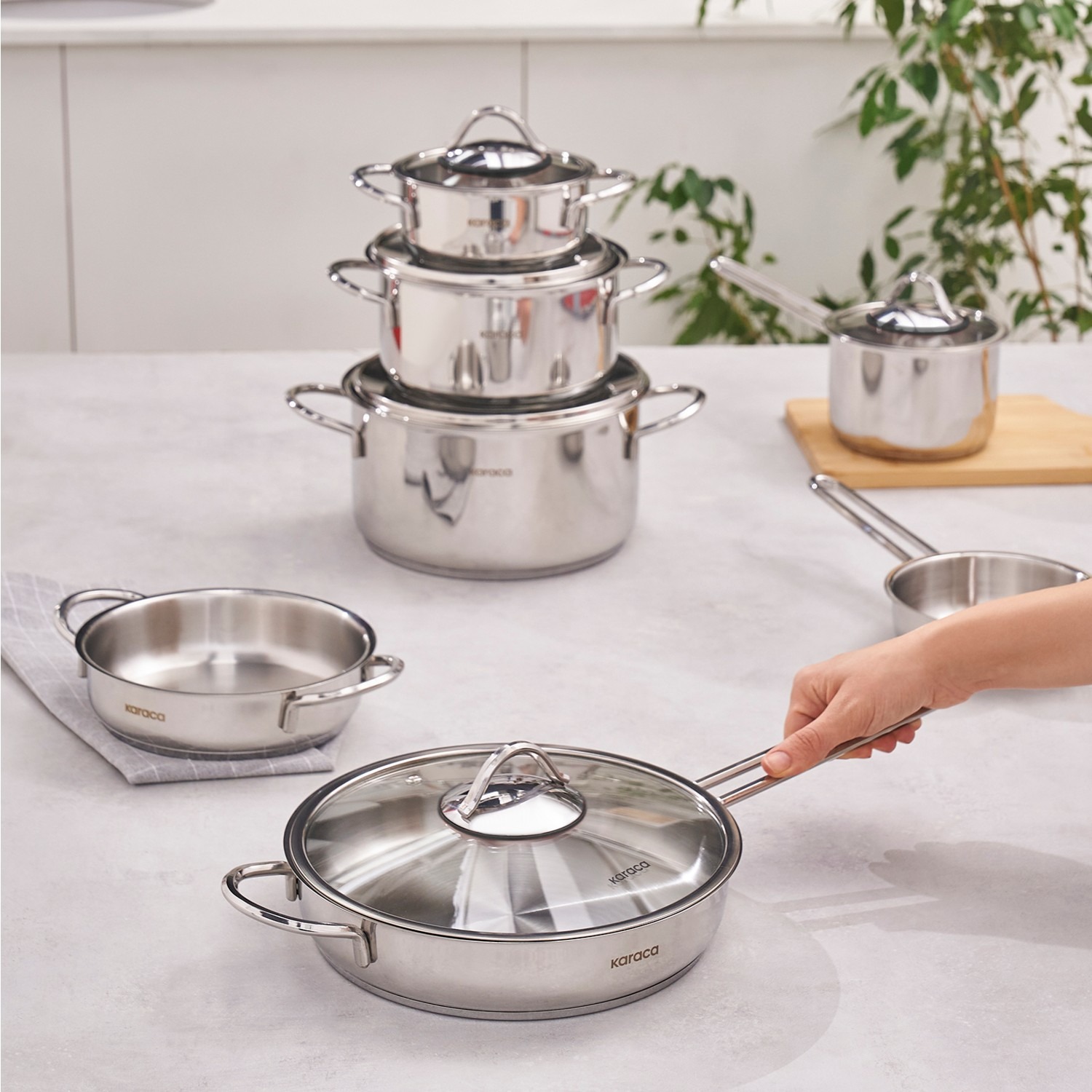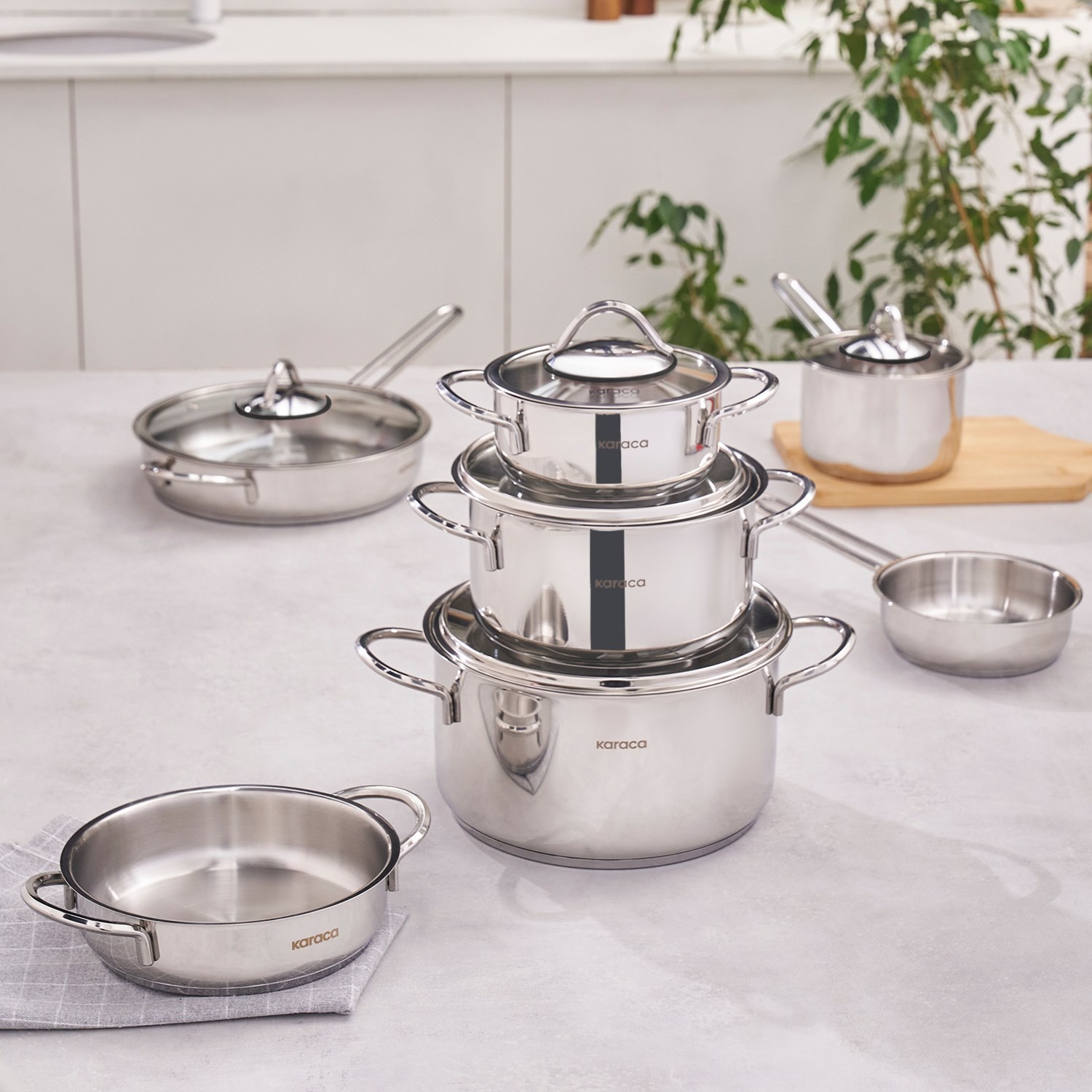 Karaca Ada 12 Parça İndüksiyon Tabanlı Çelik Tencere Seti V2