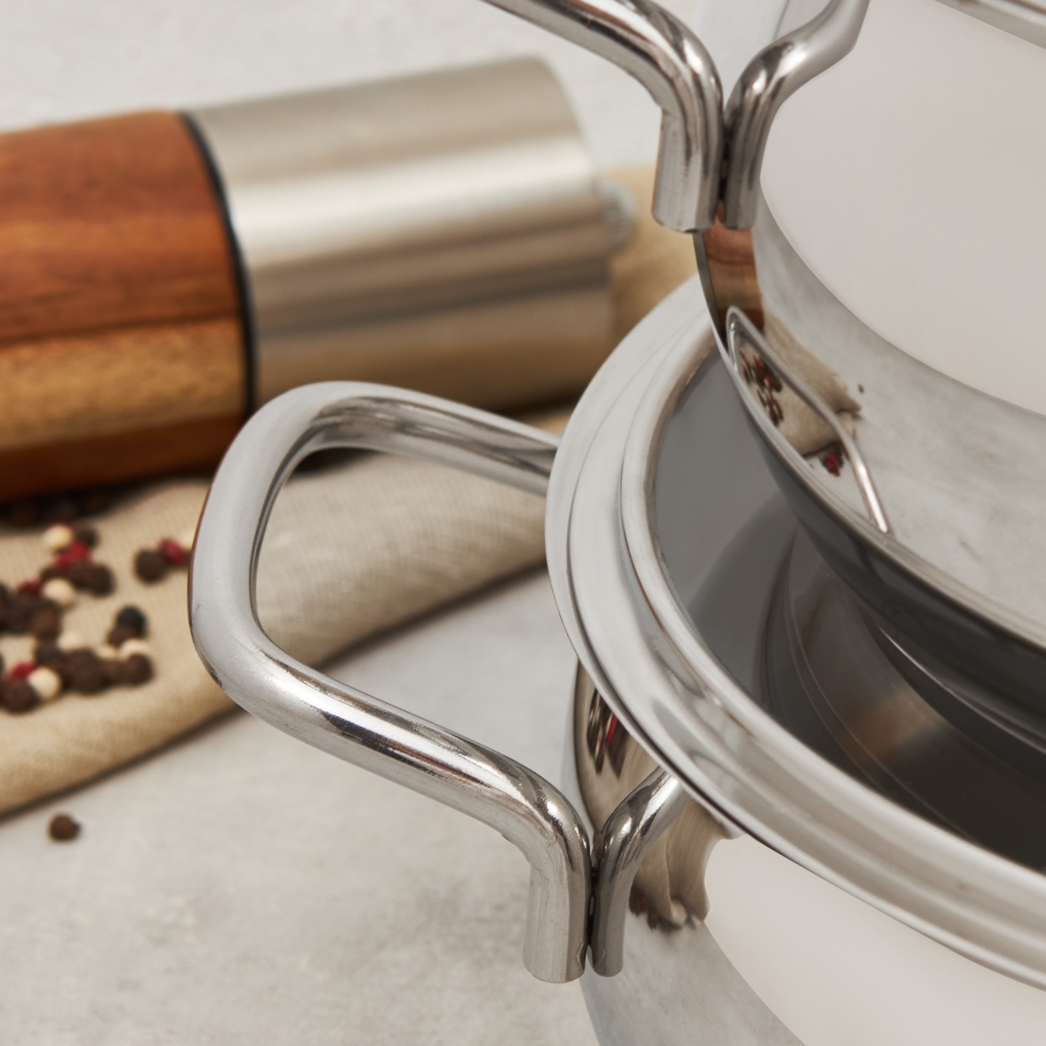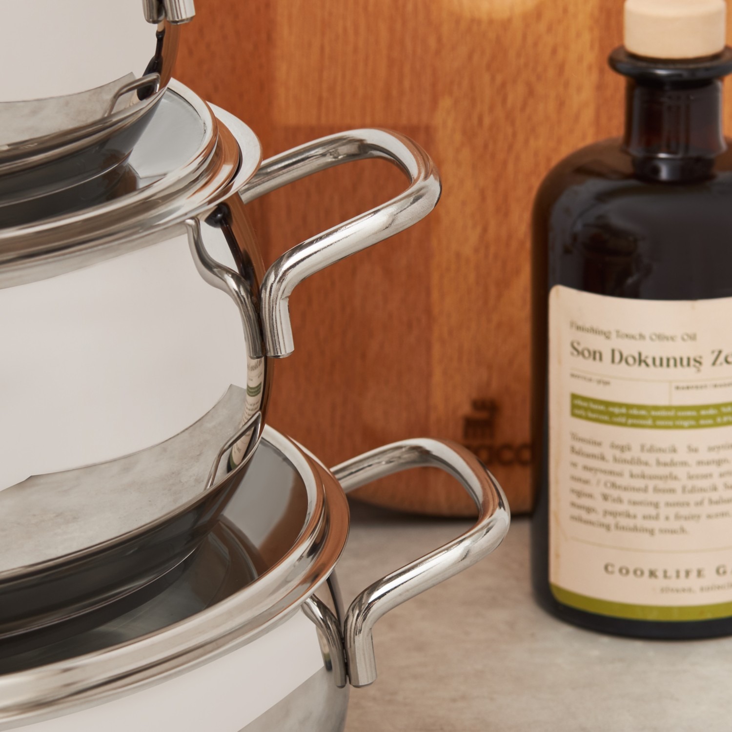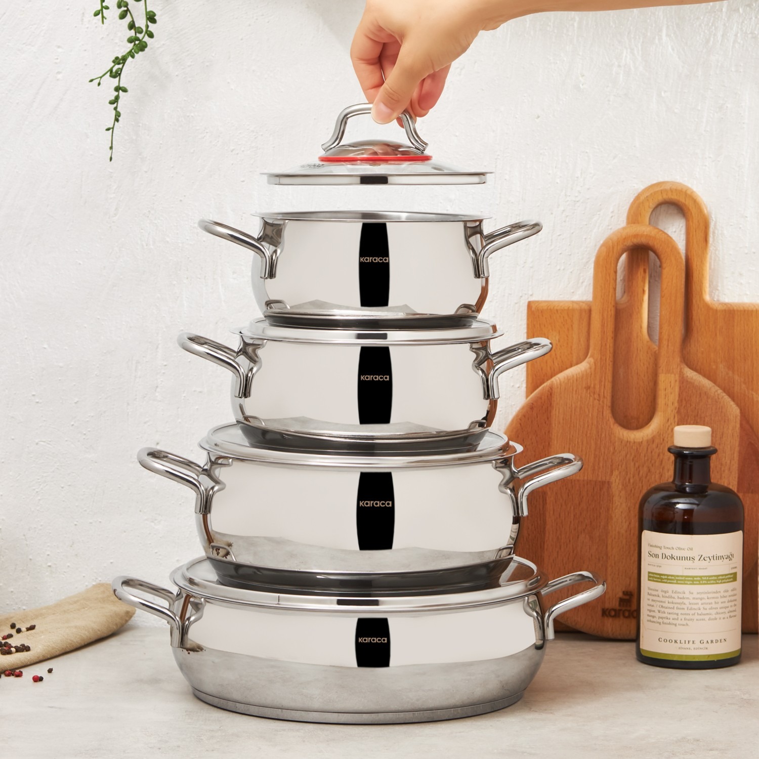 Karaca Emirgan 8 Parça Tencere Seti, ısıyı her tarafa eşit şekilde dağıtması sayesinde yemekleri eşit ve dengeli bir şekilde pişirerek mükemmel lezzeti elde etmenize yardımcı olur. Isıyı saklayan özel enerji kapsül tabanı ile maksimum zaman ve enerji tasarrufu sağlar. Tencere kapakları ısıya dayanıklı olması için özel olarak geliştirilmiştir. Paslanmaz çelik yapısı sayesinde dayanıklı ve sağlıklı bir kullanım sunan Emirgan Çelik Tencere Seti, parlaklığını koruyan özel polisajlanmış dış yüzeye sahiptir. Böylelikle ilk günkü görünümünü koruyarak yıllar boyu mutfağınıza konuk olur. Karaca Emirgan İndüksiyon Tabanlı 8 Parça Çelik Tencere Seti İçerik