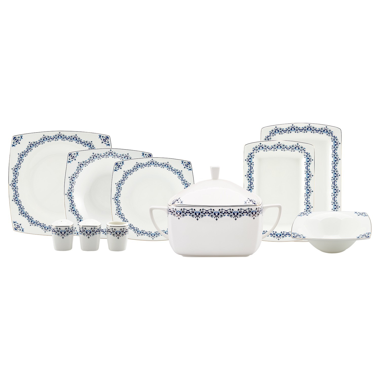 Karaca Fine Pearl Shiraz 62 Parça 12 Kişilik İnci Yemek Takımı Kare----Set İçeriği----