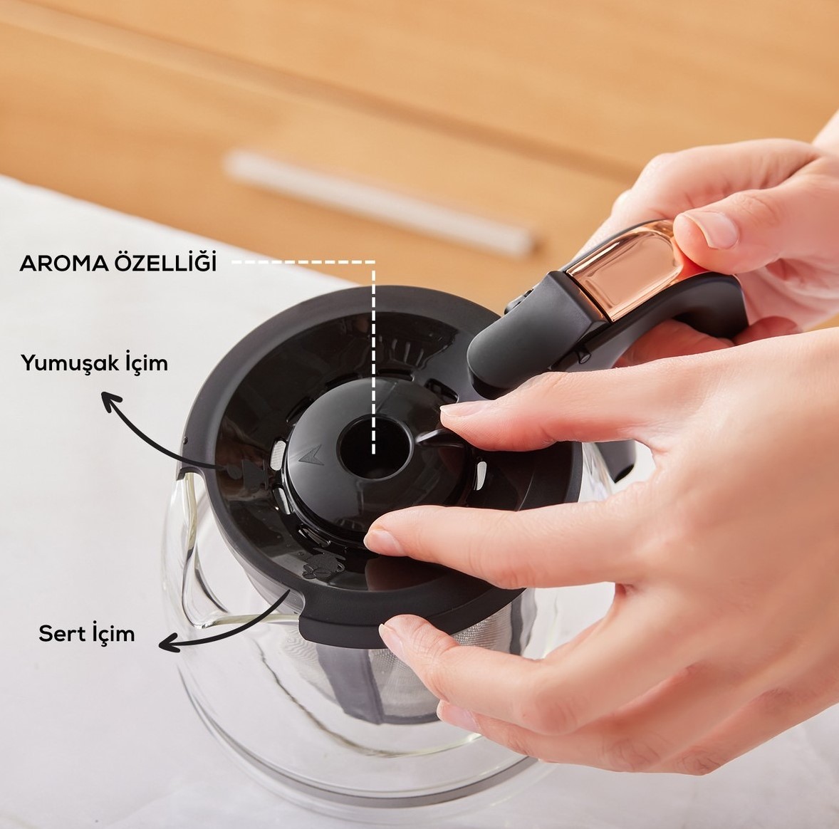 Kahvenizi modunuza göre hazırlayan karaca türk kahve makinesi 5 in1 i keşfedin! Tek seferde 10 fincan içecek hazırlama kapasitesine sahip makineniz, filtre kahve veya çay demlerken eş zamanlı olarak köz tadında türk kahvesi ve sütlü içecek hazırlama özelliğiyle dünyada ilk ve tek! Günün farklı zamanlarında farklı lezzetler tatmak, tüm ailenize ve misafirlerinize kolayca ikram hazırlamak için tasarlanan hatır plus mod şimdi sizin gibi çok yönlü. Moduna göre 5 farklı içecek karaca hatır plus mod ile modunuza göre filtre kahve, çay, süt ısıtma, sütlü içecek hazırlama ve közde türk kahvesi yapabilirsiniz. 10 fincan içecek kapasitesi karaca kahve makinesi cam demliğinde 5 fincan filtre kahve veya çay demleyebilir, eş zamanlı olarak cezvesinde ise 5 fincan közde türk kahvesi pişirebilir veya sütlü içecekler hazırlayabilirsiniz. Aynı anda iki farklı içecek filtre kahve haznesinde filtre kahvenin dışında dilerseniz çay da demleyebileceğiniz hatır plus mod ile eş zamanlı olarak türk kahvesi veya sütlü içecekler hazırlayabilirsiniz. Çay demlerken karafın içerisinde yer alan özel çay demleme filtresini kullanınız. Aroma ayarı ile filtre kahvenin lezzetini arttırabilir, damak tadınıza göre kahvenin keyfini çıkarabilirsiniz. Hatır plus mod 1385 watt güce sahiptir. 5 in 1in türk kahvesi modu 735 watt güce sahiptir. Hatır plus mod’un filtre kahve modu 600 watt güce sahiptir.Filtre / çay demleme su hazne kapasitesi 750 ml filtre kahve haznesinde dilerseniz çay da demleyebileceğiniz hatır plus mod’un 750 ml. Kapasitesi ile filtre kahve ve çay keyfiniz uzadıkça uzasın.Fincan kapasitesi:5 fincan |