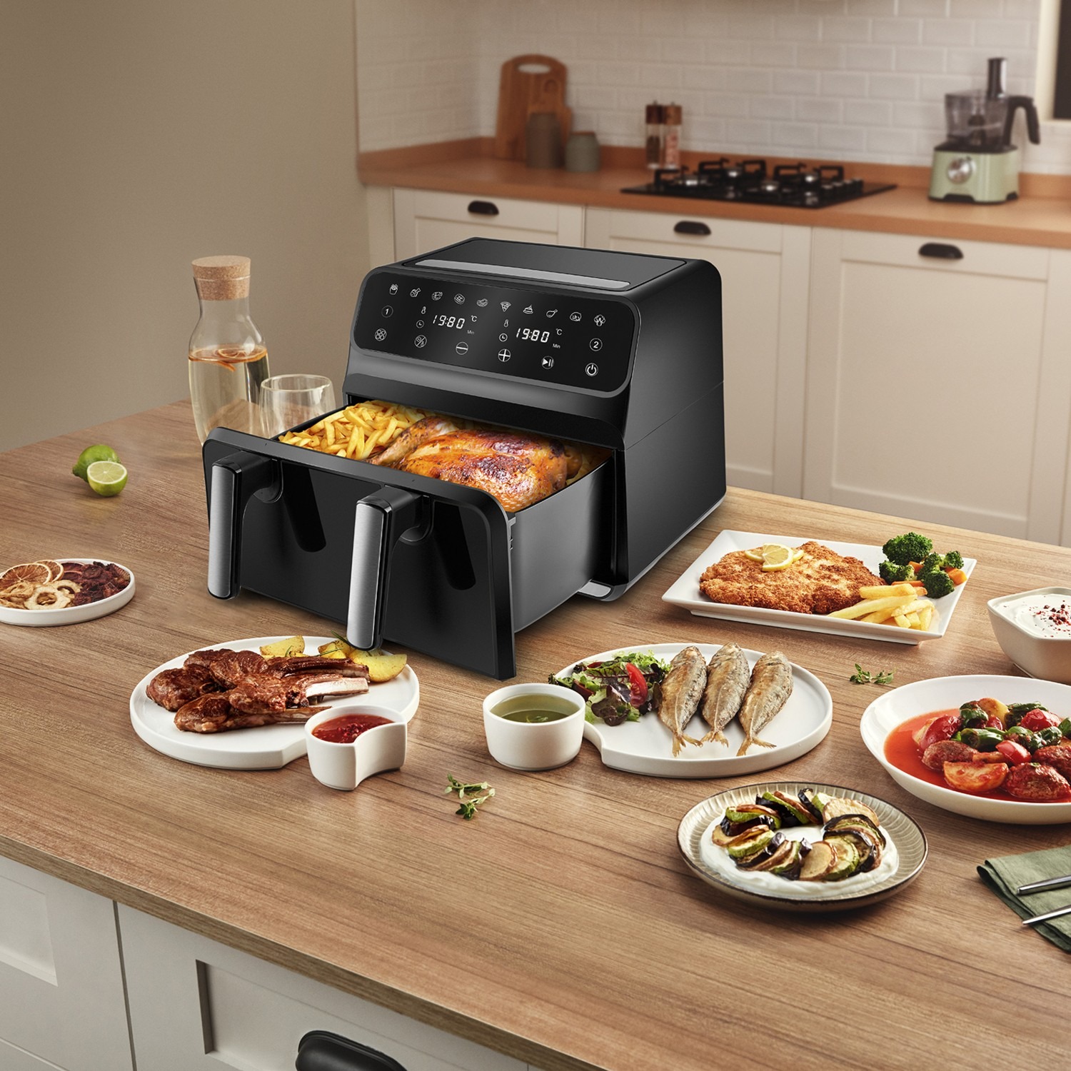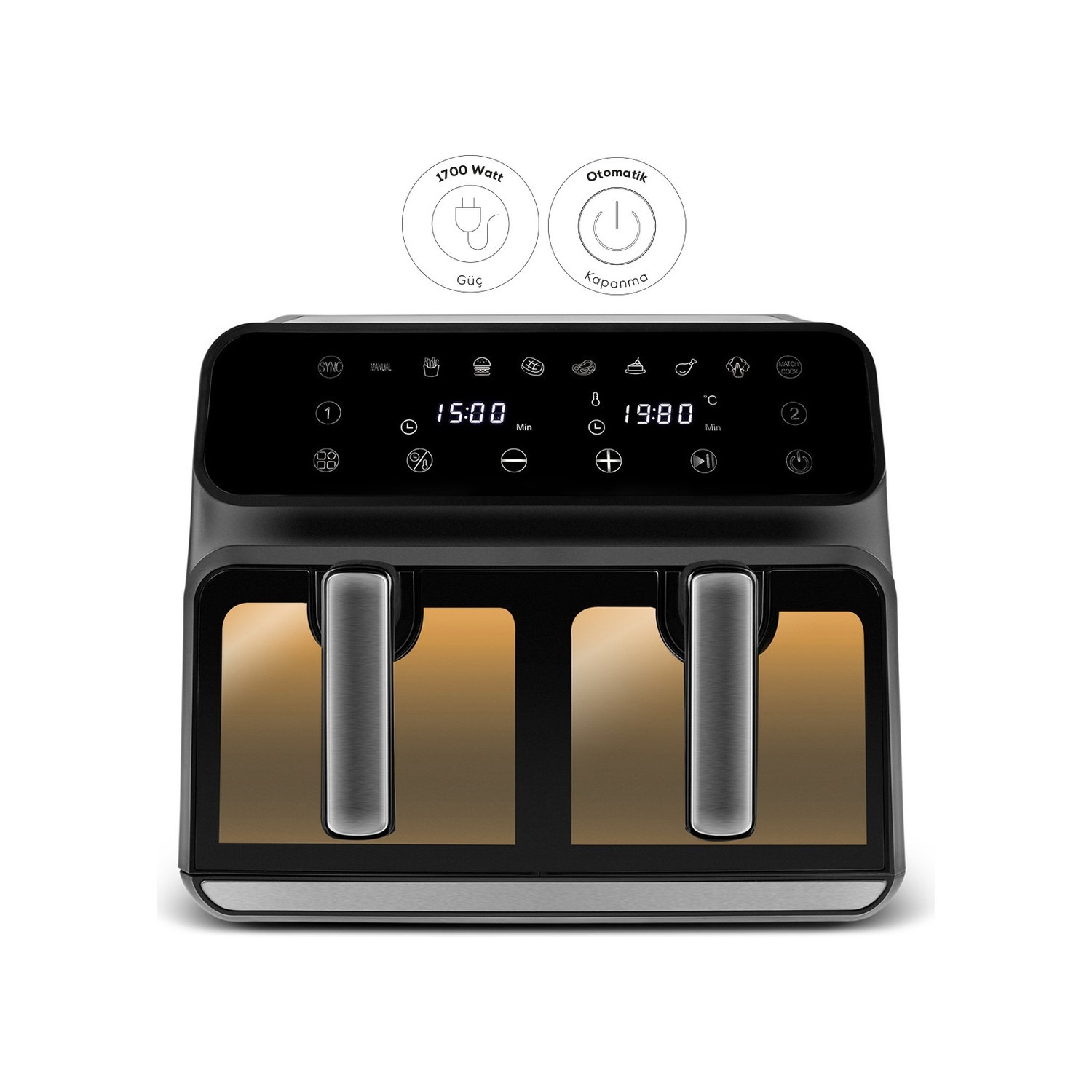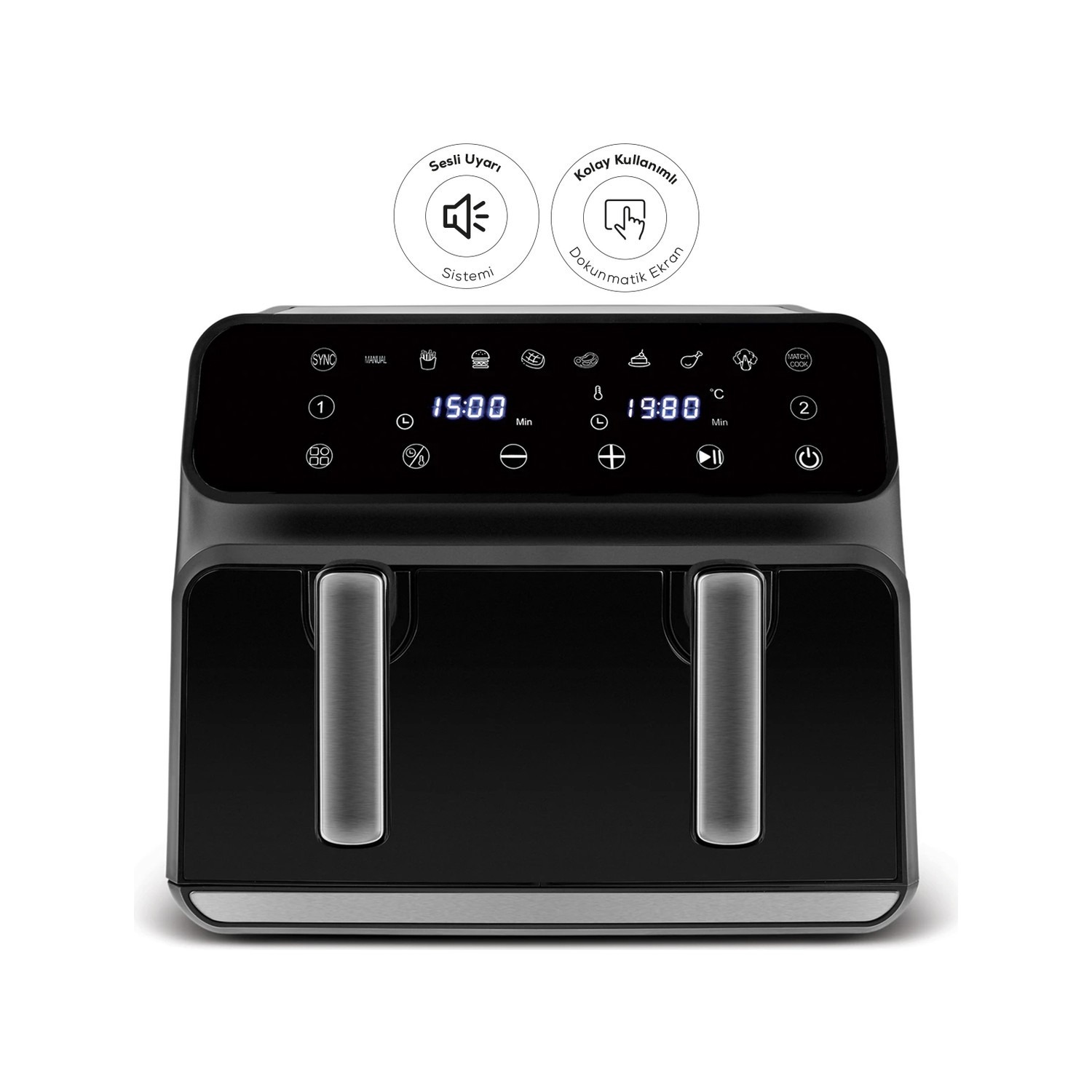Karaca Multifry XXXL 9 Litre Dijital Tek Hazneli / Seperatör ile Çift Hazne Kullanılabilen Cam Pencereli Airfryer