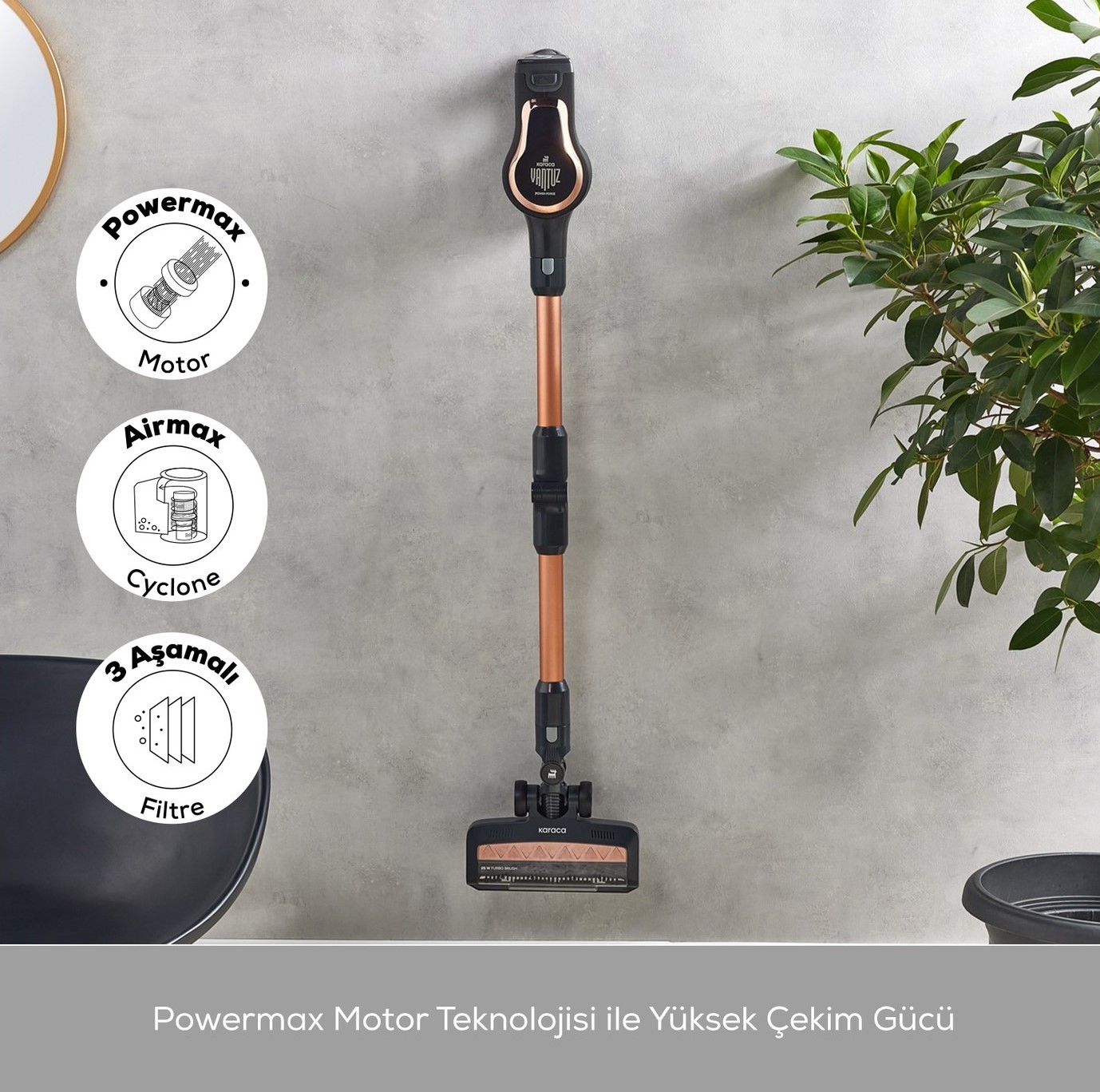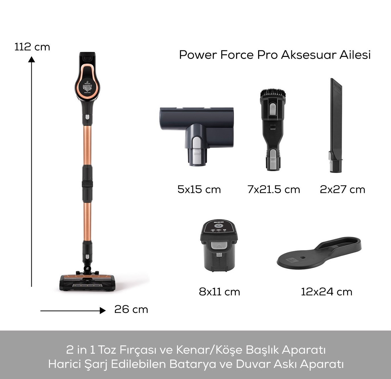- Çıkarılabilir batarya teknolojisi sayesinde, Vantuz Power Force Pro süpürgeniz istenilen yerde veya askısında