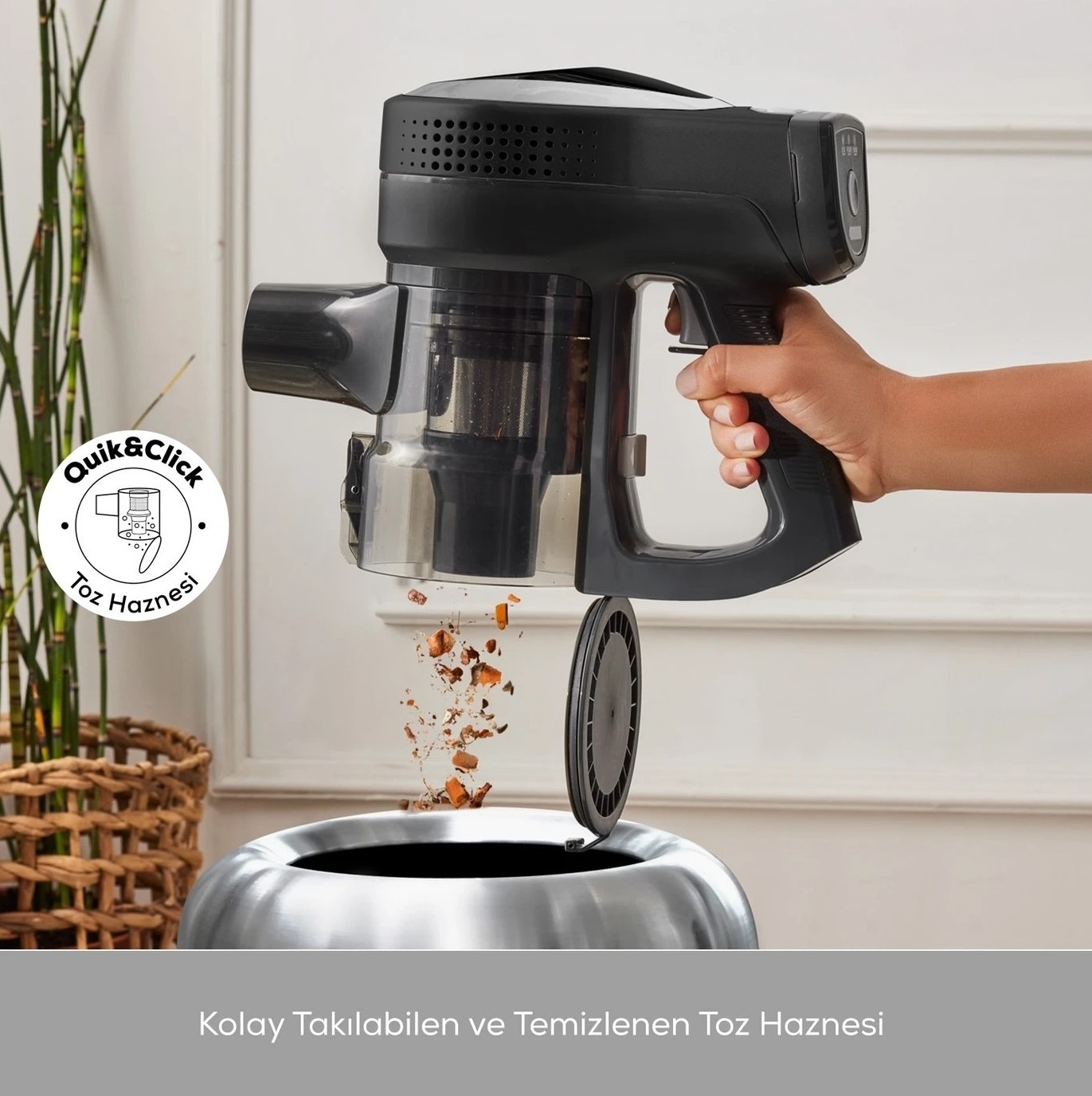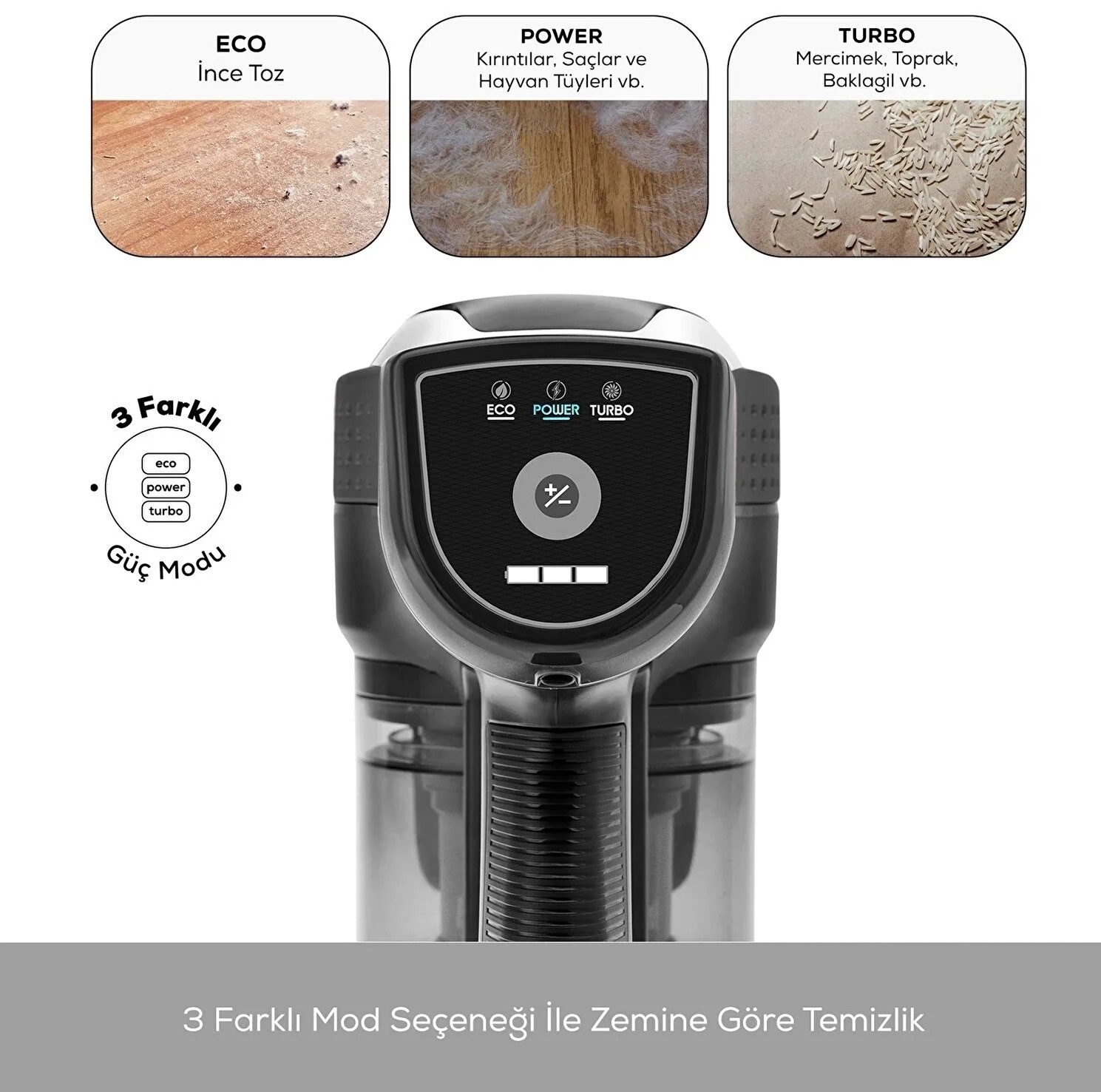 Karaca Vantuz Power Pro Hepa Filtreli 2 In 1 Şarj Edilebilir Dik Süpürge Matte Black Silver Özellikleri