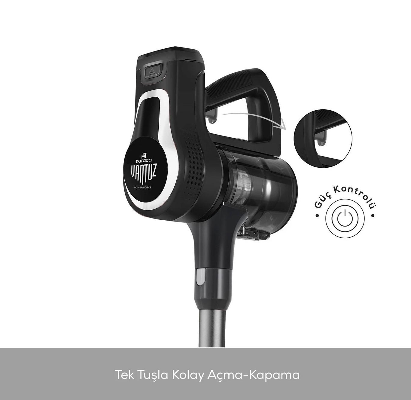 Karaca Vantuz Power Force Pro 2 in 1 Şarj Edilebilir Dik Süpürge Matte Black Silver