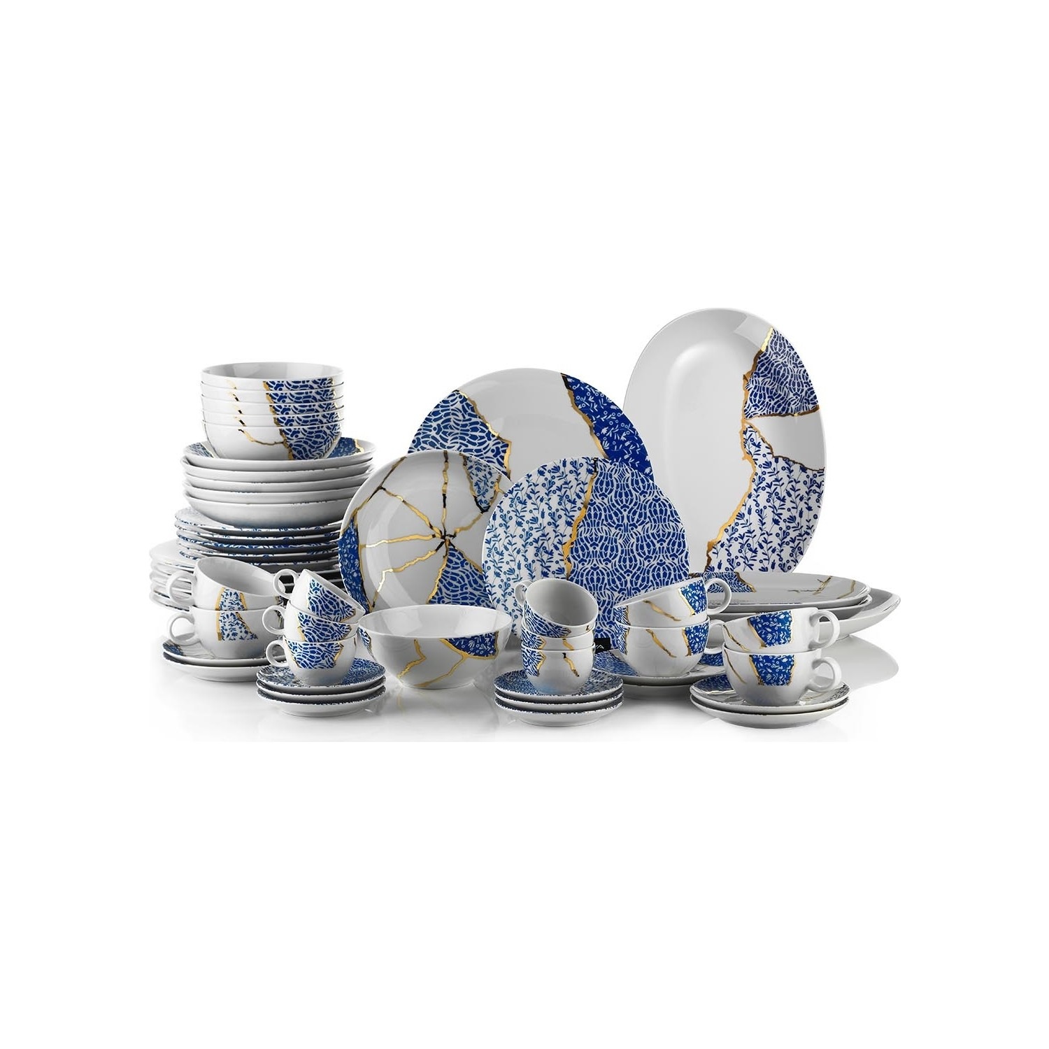 Kütahya Porselen Zeugma Kintsugi 28 Parça Yemek Takımı 6 Adet 27 cm Servis Tabağı 6 Adet 21 cm Çukur Tabak 6 Adet 21 cm Pasta Tabağı 6 Adet 15 cm Kase 2 Adet 22 cm Kayık Tabak 2 Adet 26 cm Kayık Tabaktan Oluşmaktadır. |