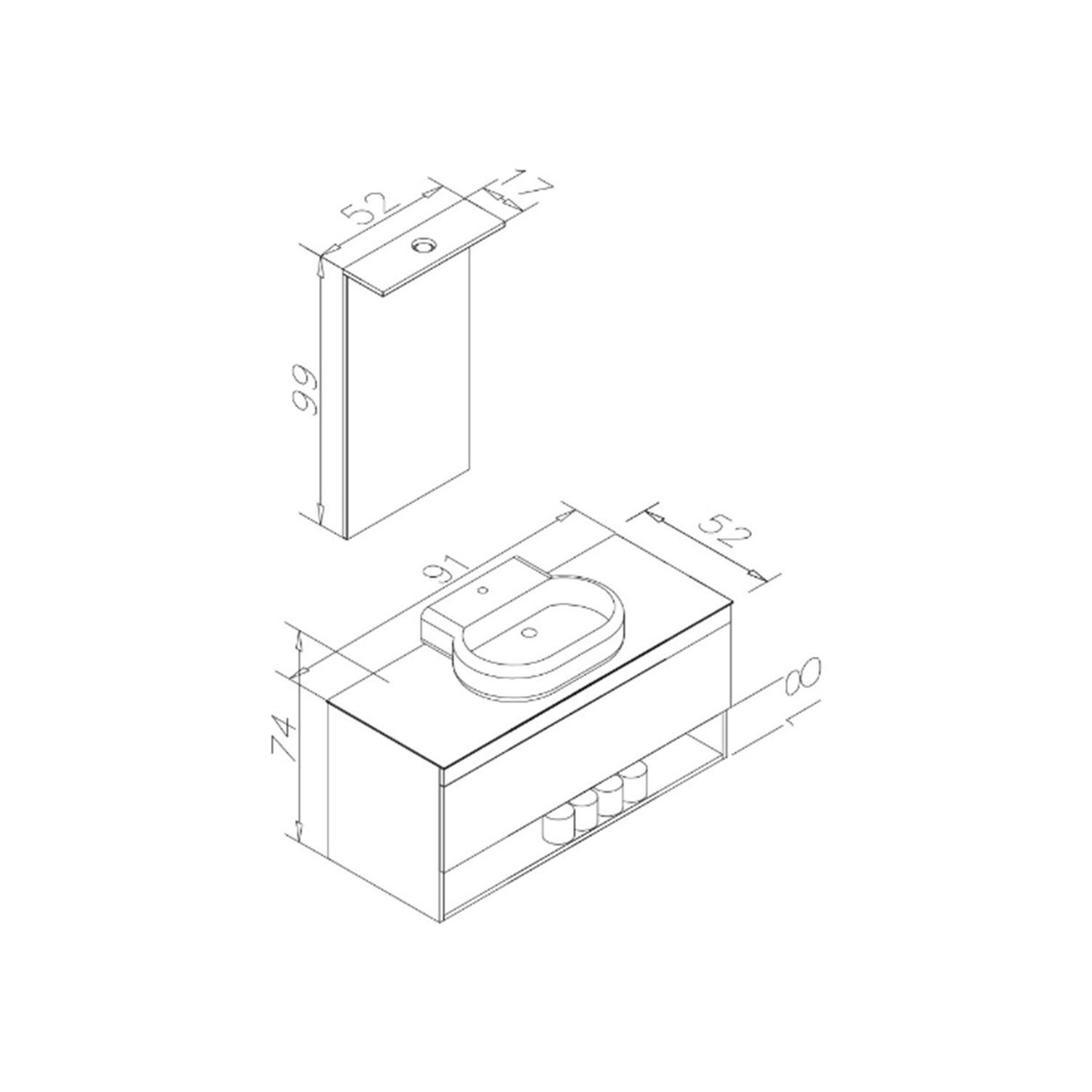 ORKA BANYO DOLABI TAKIMI KNİDOS 90 LEGNANO Estetik ve modern tasarım 1. sınıf seramik 90 cm tezgah üstü lavabo Temperli cam tezgah Spor ışıklı ayna ünitesi AYNA ÜNİTESİ Genişlik: 52 cm Yükseklik: 99 cm Derinlik: 17 cm LAVABO ÜNİTESİ Genişlik: 90 cm Yükseklik: 74 cm Derinlik: 52 cm