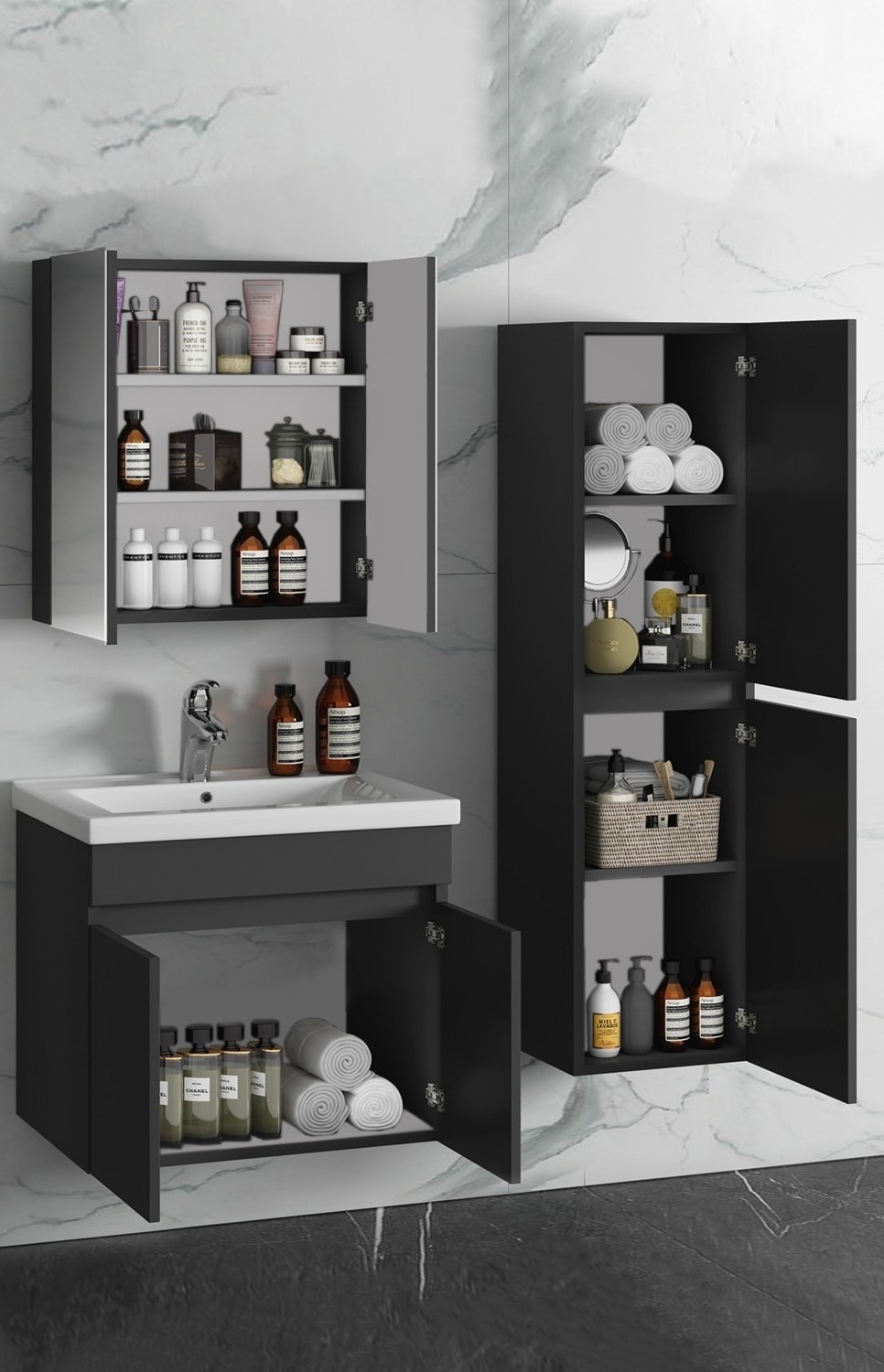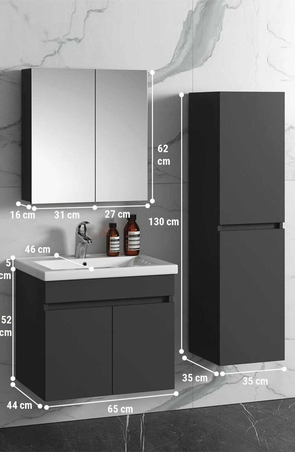 - 65 cm aynalı banyo dolabı ve 35 cm boy dolabı takımı