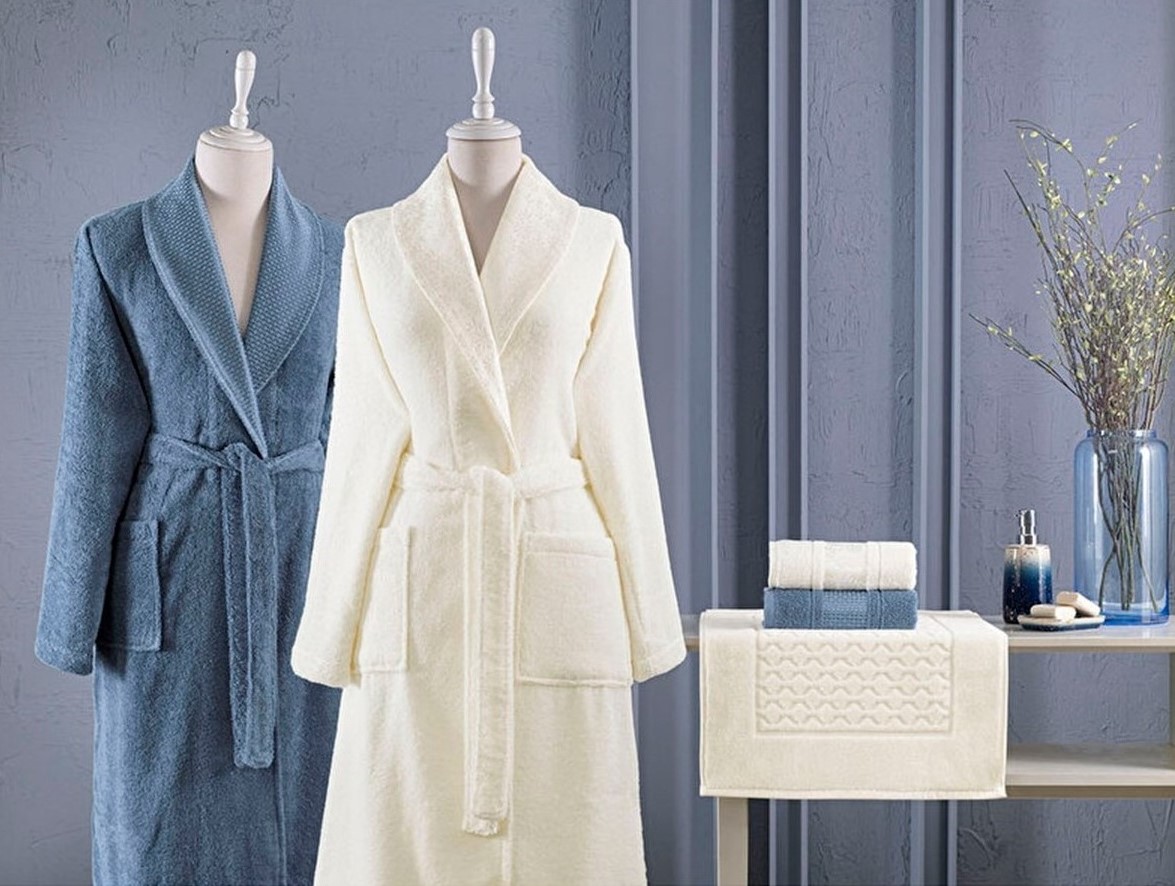 Özdilek Blossom Happy Set Krem-İndigo Kumaş:%100 Pamuk İçerik: El Havlusu: 50x80 cm (2 Adet) Bornoz (Bay: L Bayan:M Beden) Paspas: 45x65 |