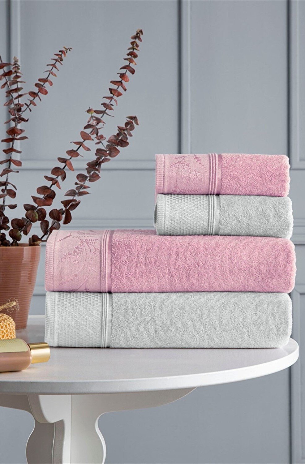 Özdilek Ditsy Aile Bornoz Seti Pembe-Gri