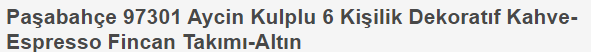 Paşabahçe 97301 Kulplu 6 Kişilik Dekoratıf Kahve-Espresso Fincan Takımı-ALTIN