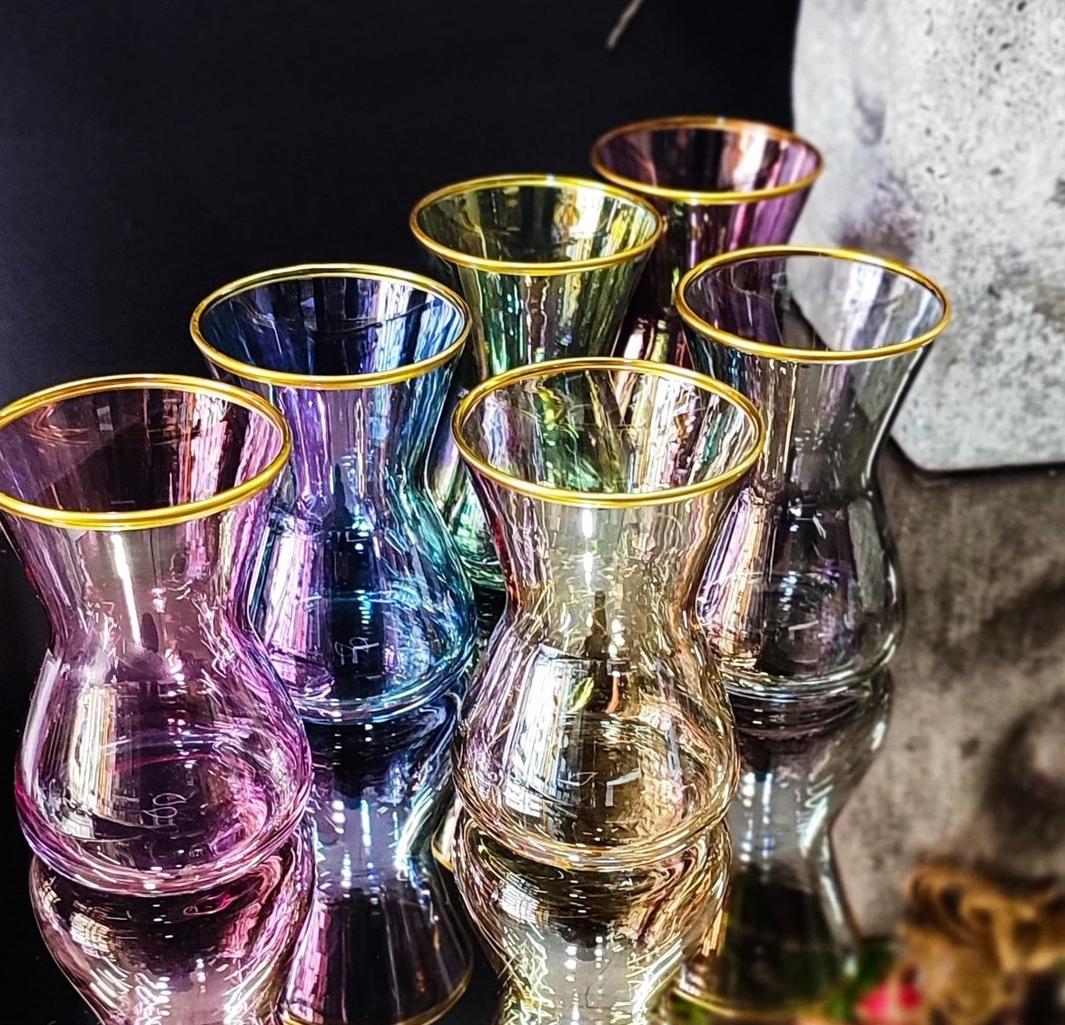 Gök Kuşağı Çay Takımı siz kıymetli müşterilerimiz için özel olarak tasarlandı. Set içeriği: 6 adet 140cc Paşabahçe bardak Renklerin zarar görmemesi için elde yıkayınız. |
