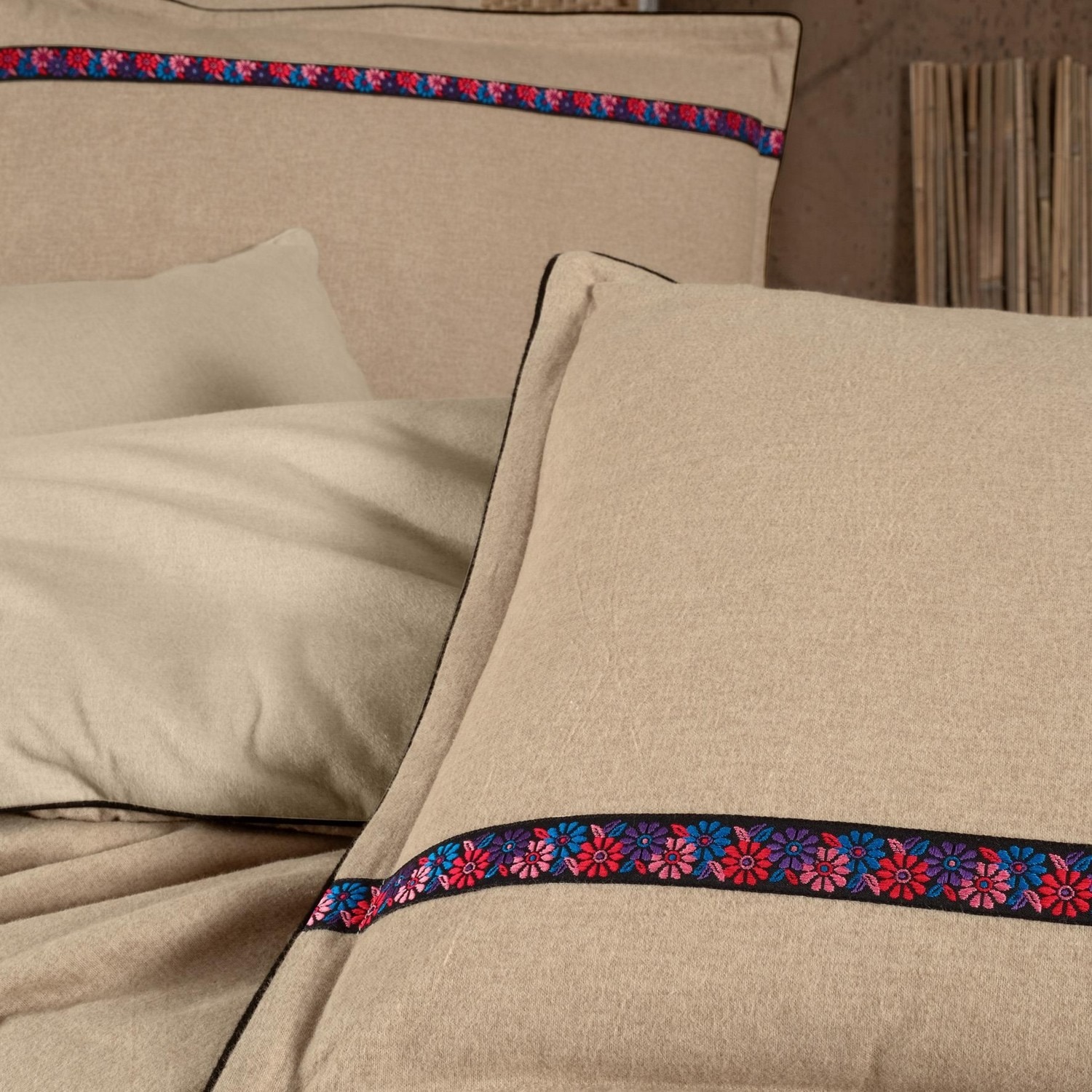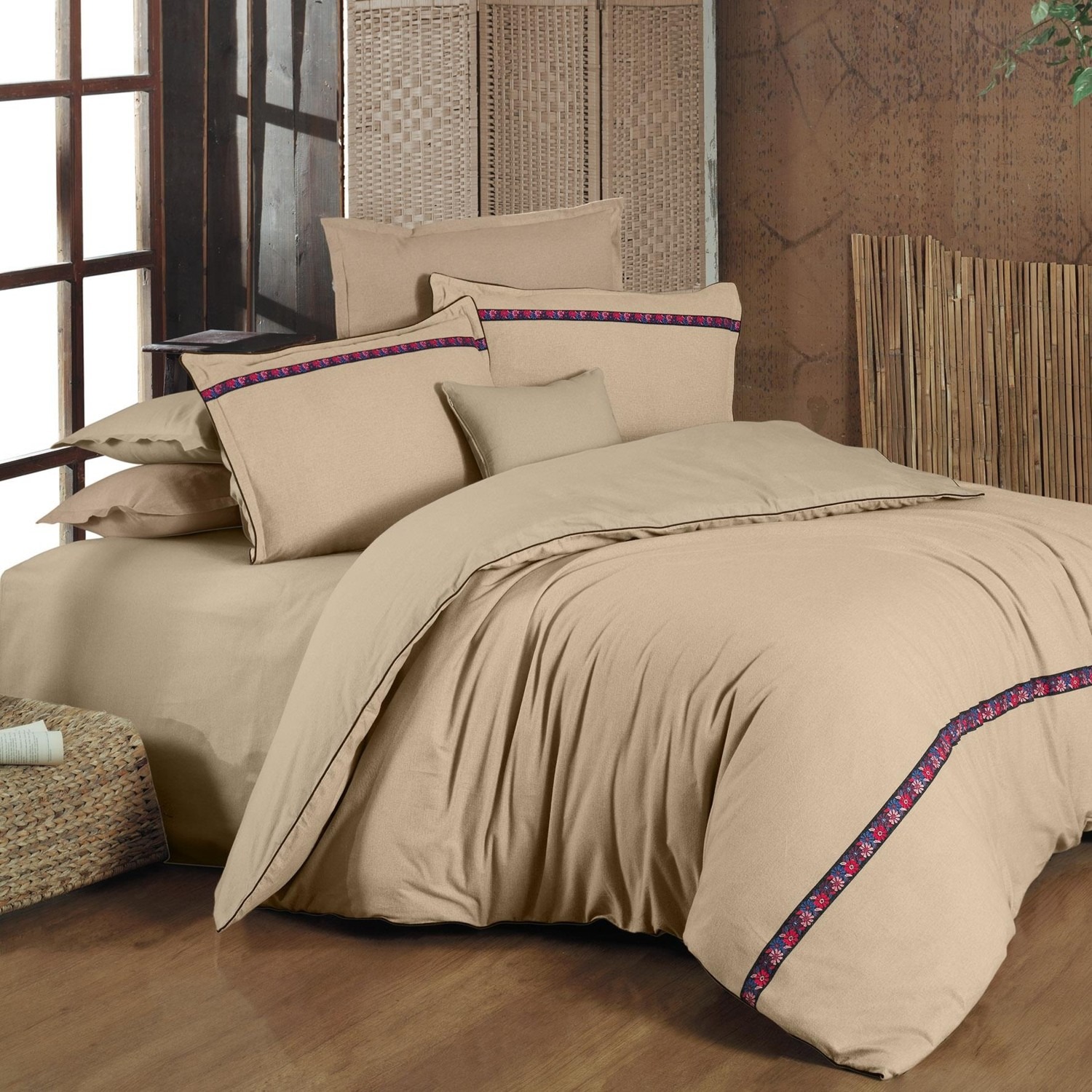 Sarev Enrike Bej Tek Kişilik %100 Pamuk Flanel (Pazen) Nevresim Takımı