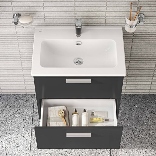 VitrA Ardea Banyo Dolabı Seti, banyonuzda yer tasarrufu sağlayarak, küçük alanlar için de ideal bir seçimdir. Aynı zamanda su ve nem gibi banyo koşullarına dayanıklı malzemelerden üretildiği için uzun ömürlü bir kullanım sunar.