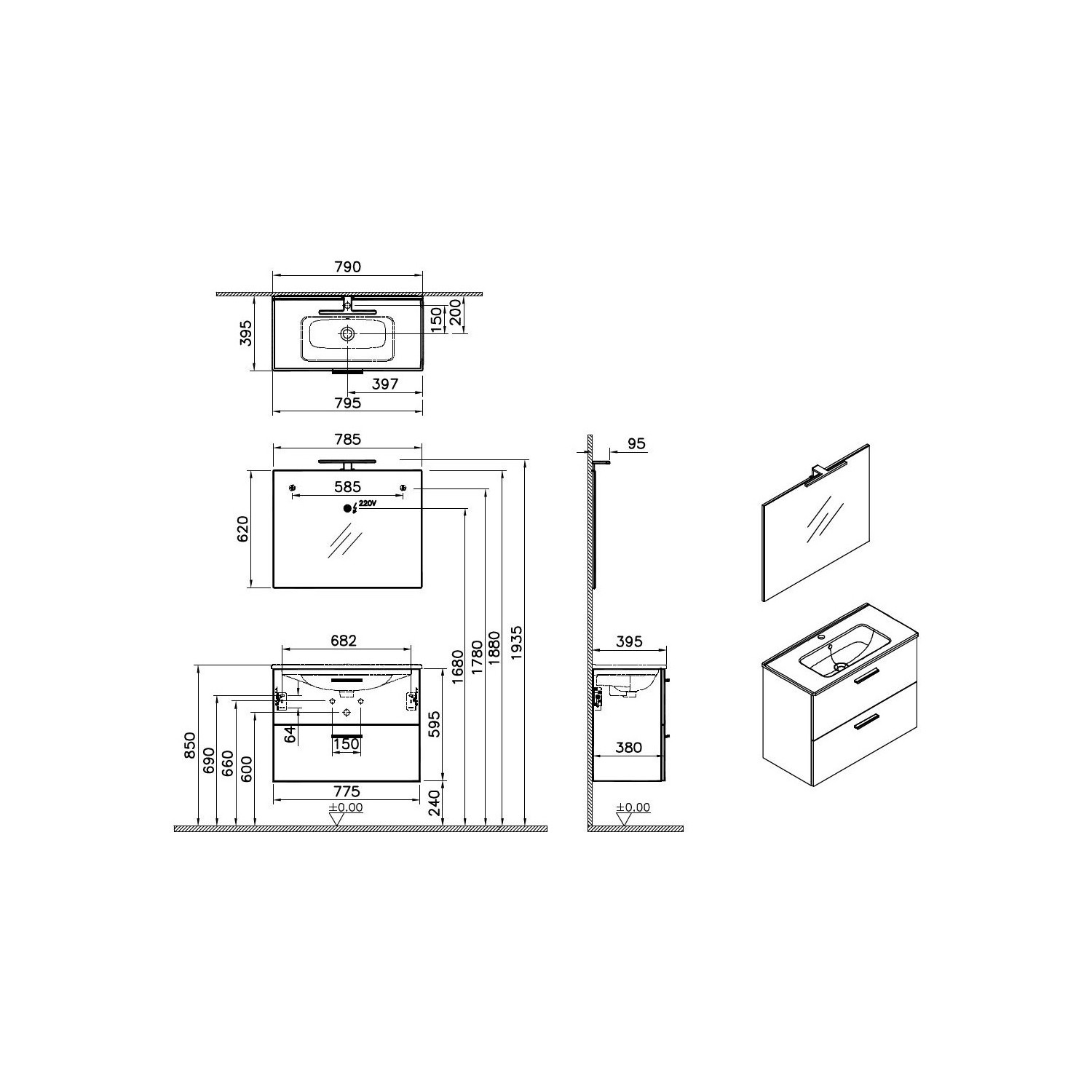 Setin diğer parçası olan ayna dolabı, banyonuzda hem dekoratif hem de pratik bir kullanım sunar. Eşyalarınızı organize etmek için ihtiyacınız olan depolama alanını sağlar. Ayrıca üzerindeki LED aydınlatma sistemi, banyonuzda bir ışık kaynağı olarak da kullanılabilir.