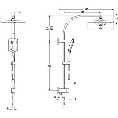 Bu duş kolonu, geniş bir yağmur tipi başlık, el duşu ve vücut duşu gibi üç farklı özellik ile donatılmıştır. Yağmur tipi başlık, sizi suyun yumuşak ve rahatlatıcı yağmuruyla sararak günlük stresinizden kurtarır. El duşu, daha ihtiyaç duyulan bölgelere odaklanmanıza yardımcı olurken, vücut duşu da sizi bir spa ortamına götürecek masaj etkisi yaratır. Böylece, her duşta kendinizi rahat ve yenilenmiş hissedersiniz.