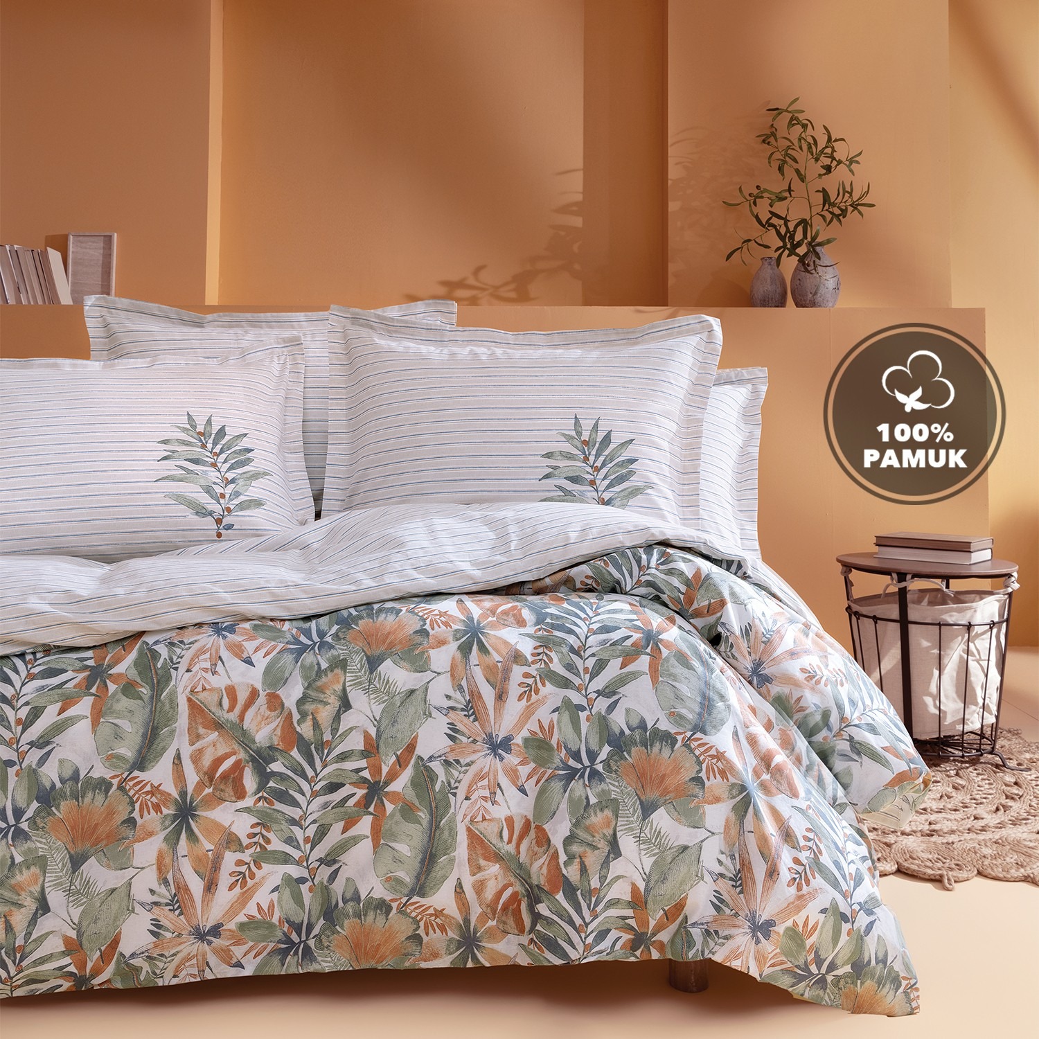 Doğadan İlham Alan Konfor Amy Ranforce Nevresim Takımı ile uykular sanat eserine dönüşür. Monstera desenleriyle yatak odalarına eşsiz bir atmosfer katan Amy Ranforce Nevresim Takımı, pamuk kalitesiyle rahat bir uyku deneyimi sunar. Volanlı yastık kılıfları ise sadece dekoratif bir etki yaratmakla kalmaz, aynı zamanda yatak odalarına zarafet katar. Amy Ranforce Nevresim Takımı, makinede yıkanabilme özelliğiyle kolayca temizlenir, ferah bir uyku ortamı yaratır