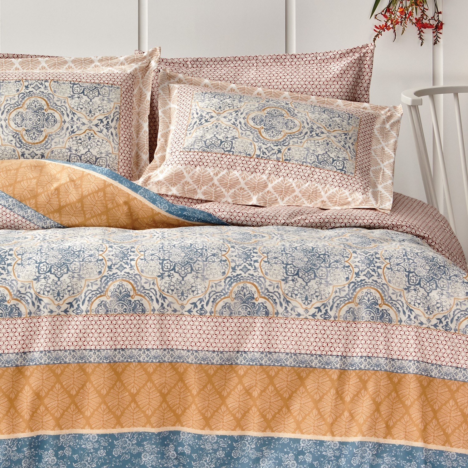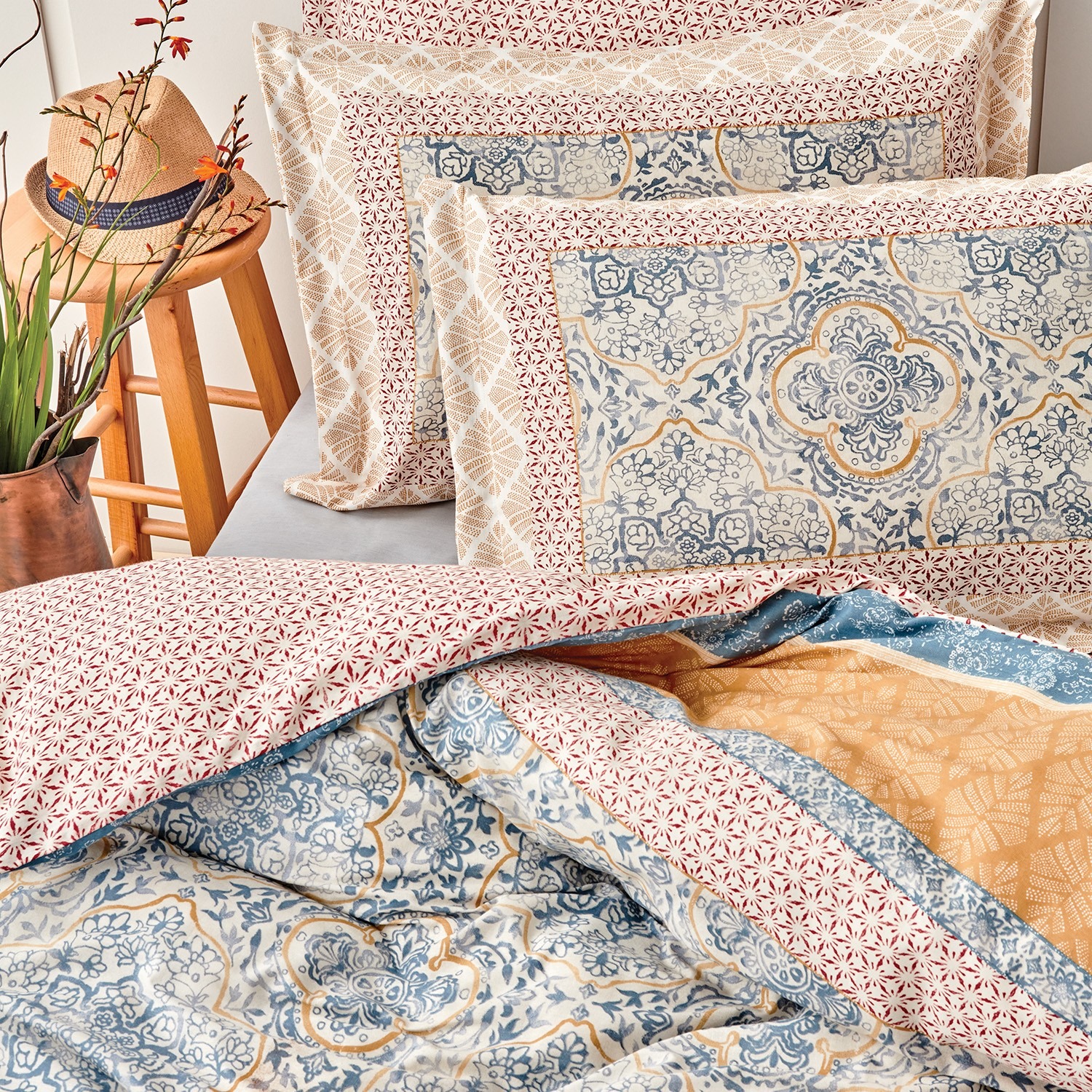 Delissa Ranforce Nevresim Seti, Dengeli Renk Harmonisi Ve Geleneksel Desen Uygulaması İle Yatak Odalarına Sonbaharın Huzurlu Sıcaklığını Getiriyor.