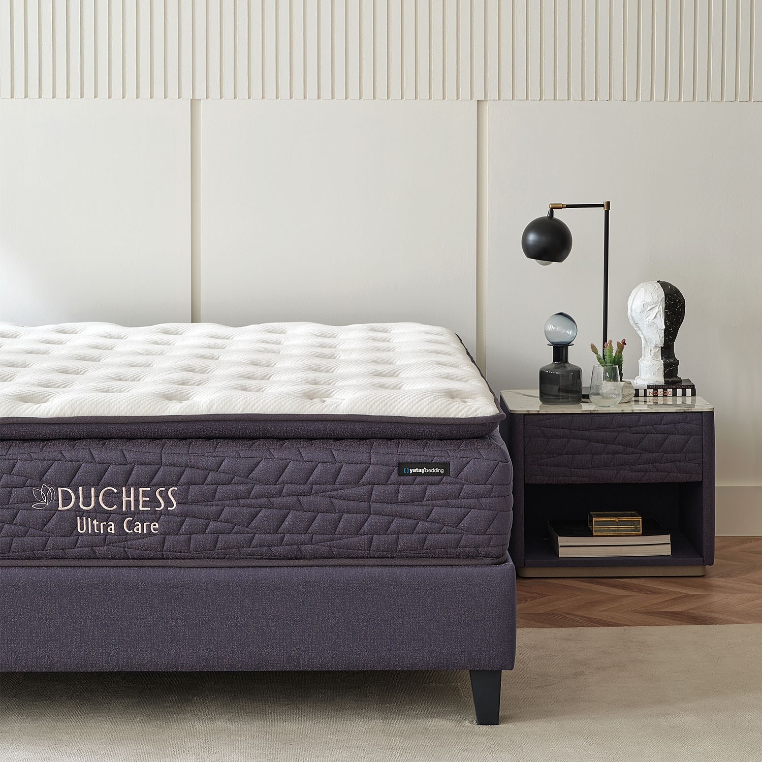 - Duchess Ultra Care Yatak, özel konfor pedi ve Purotex Teknolojisine sahip kumaşı, vücut ile temas ettiği süre boyunca aktif kalan probiyotikler sayesinde hijyenik bir yatak yüzeyi sağlar ve sağlıklı bir uyku ortamı yaratır.
