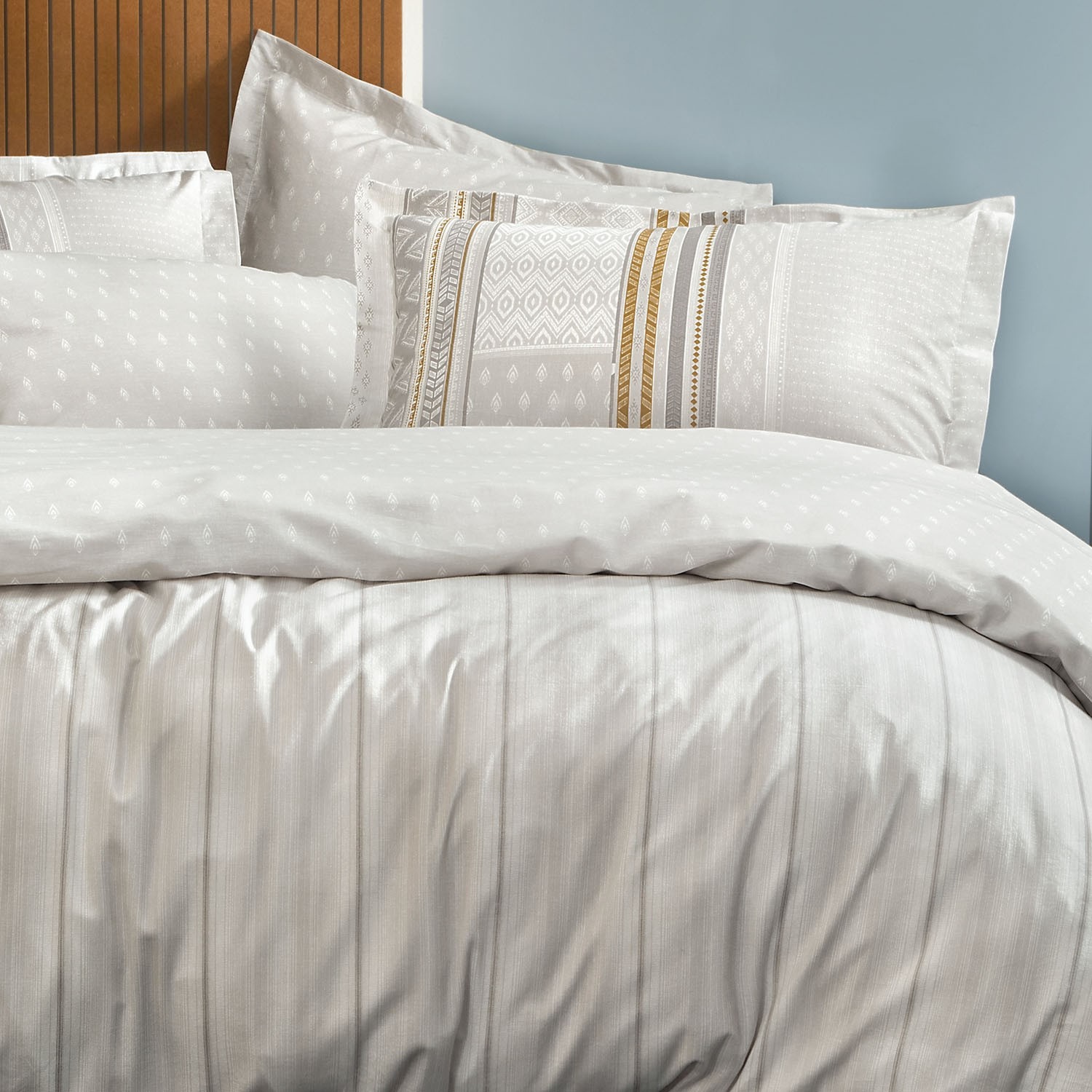 Gri rengin sade ve asil enerjisini çizgi desenleriyle buluşturan Pamena Ranforce Nevresim Seti, dingin ve zamansız bir tasarım sunuyor. SET İÇERİĞİ VE ÖZELLİKLERİ