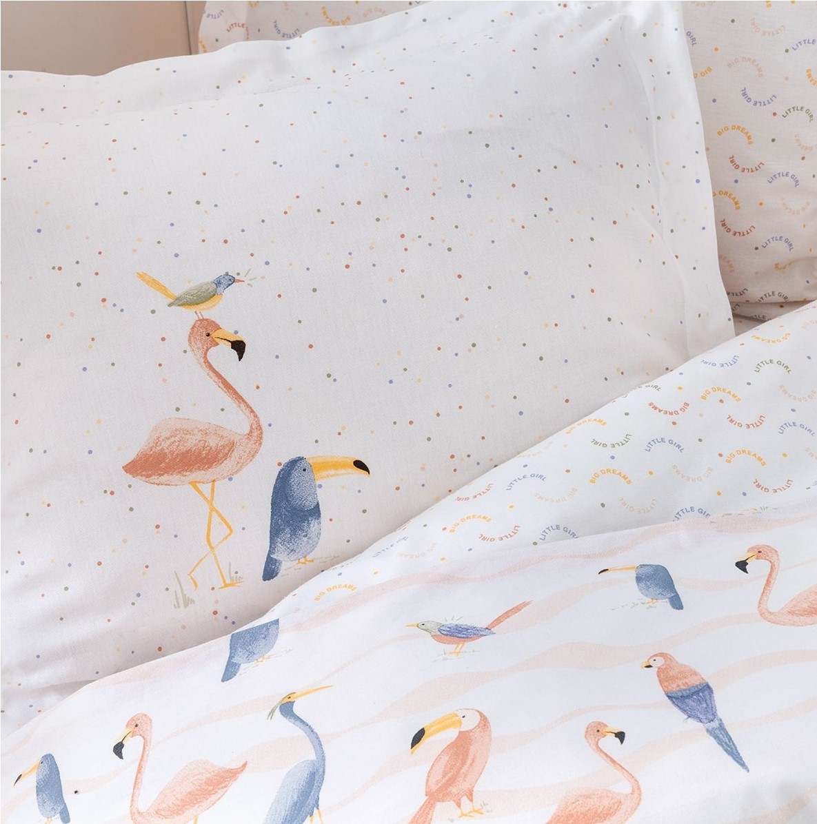 - Nuala Ranforce Nevresim Takımı, miniklerin hayallerini rengârenk ve çeşitli motiflere sahip tasarımıyla süsler.